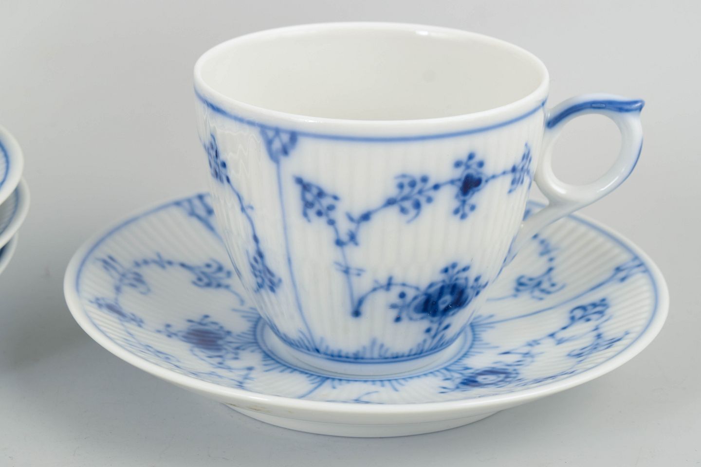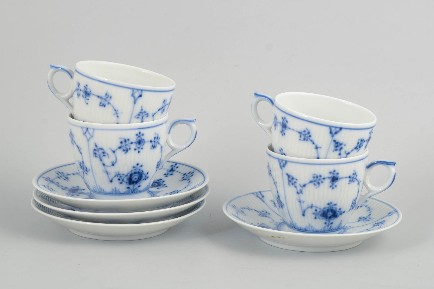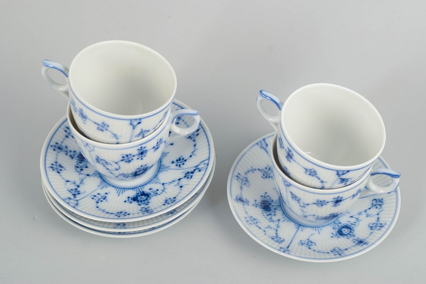 Royal Copenhagen, Musselmalet Riflet, kaffestel til 4 personer.