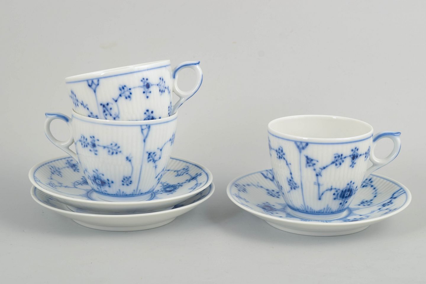 Royal Copenhagen, Musselmalet Riflet, kaffestel til 3 personer.