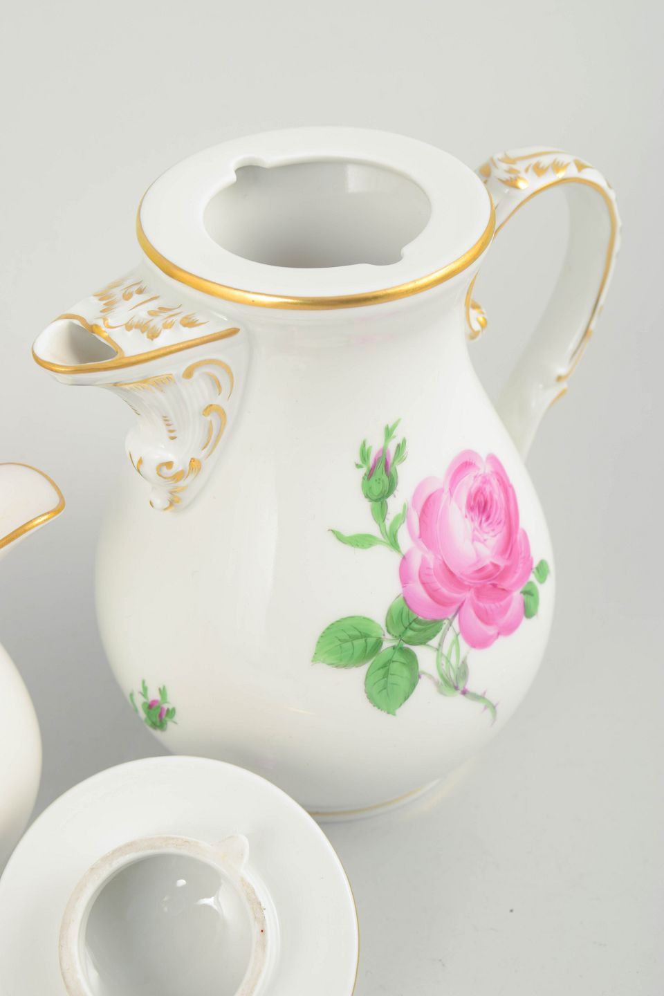 Meissen, lille kaffekande med låg og flødekande, serien Pink flower.
