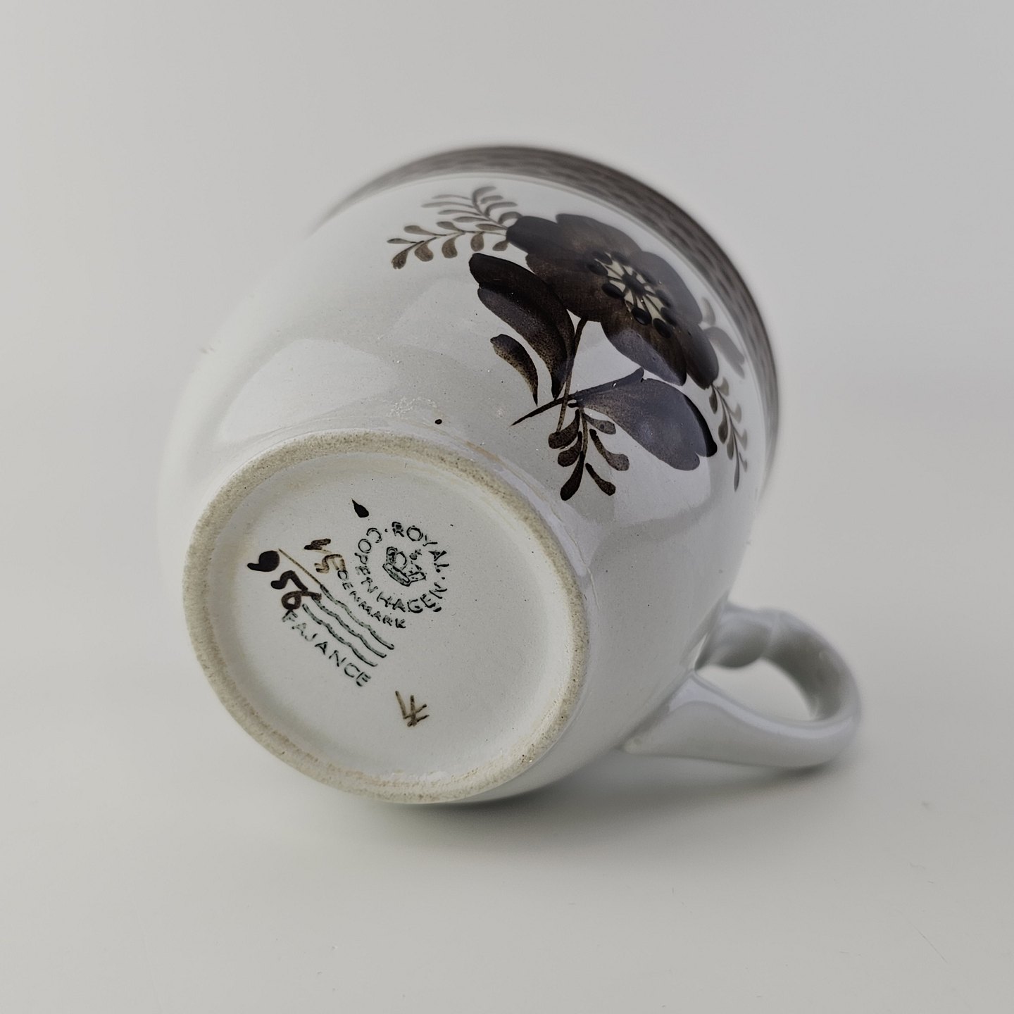 Kaffekop med underkop i fajance fra stellet Brun Tranquebar fra år 1919