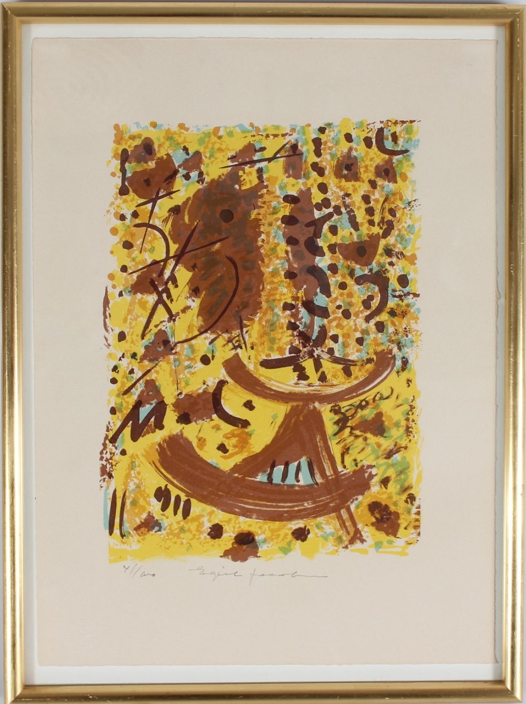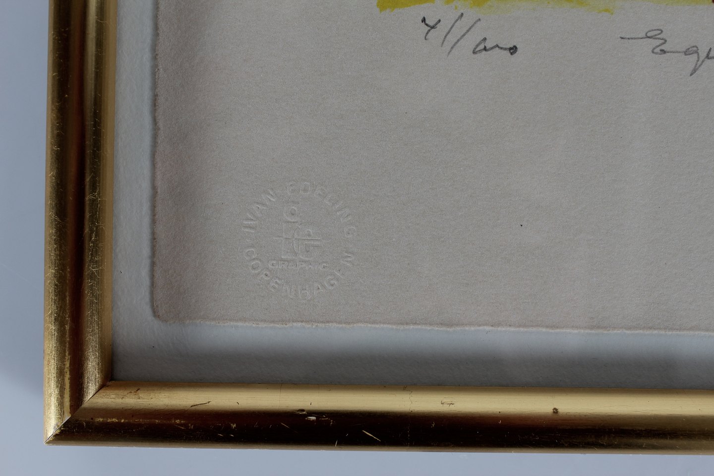 Farvelitografi 41/100 i guldramme af træ