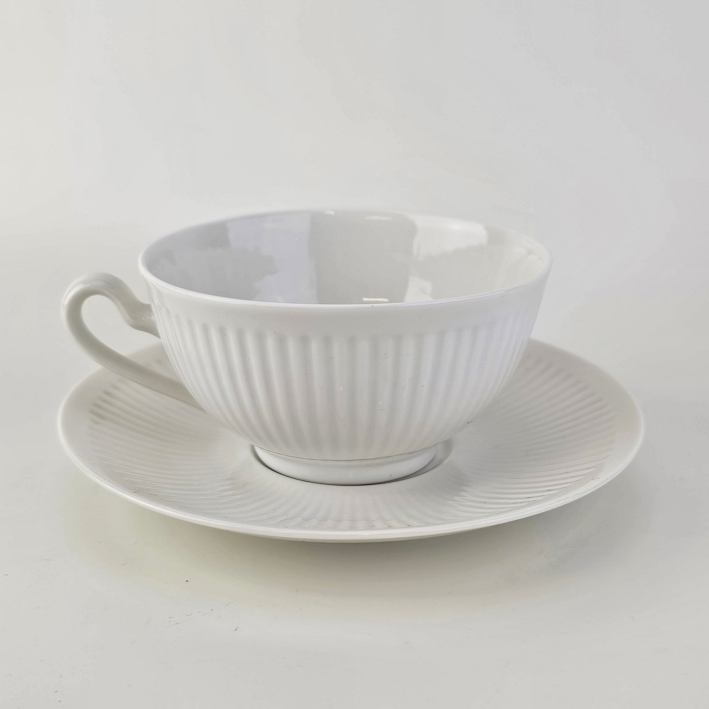 Georgiana er stel i hvidt porcelæn med riflet mønster