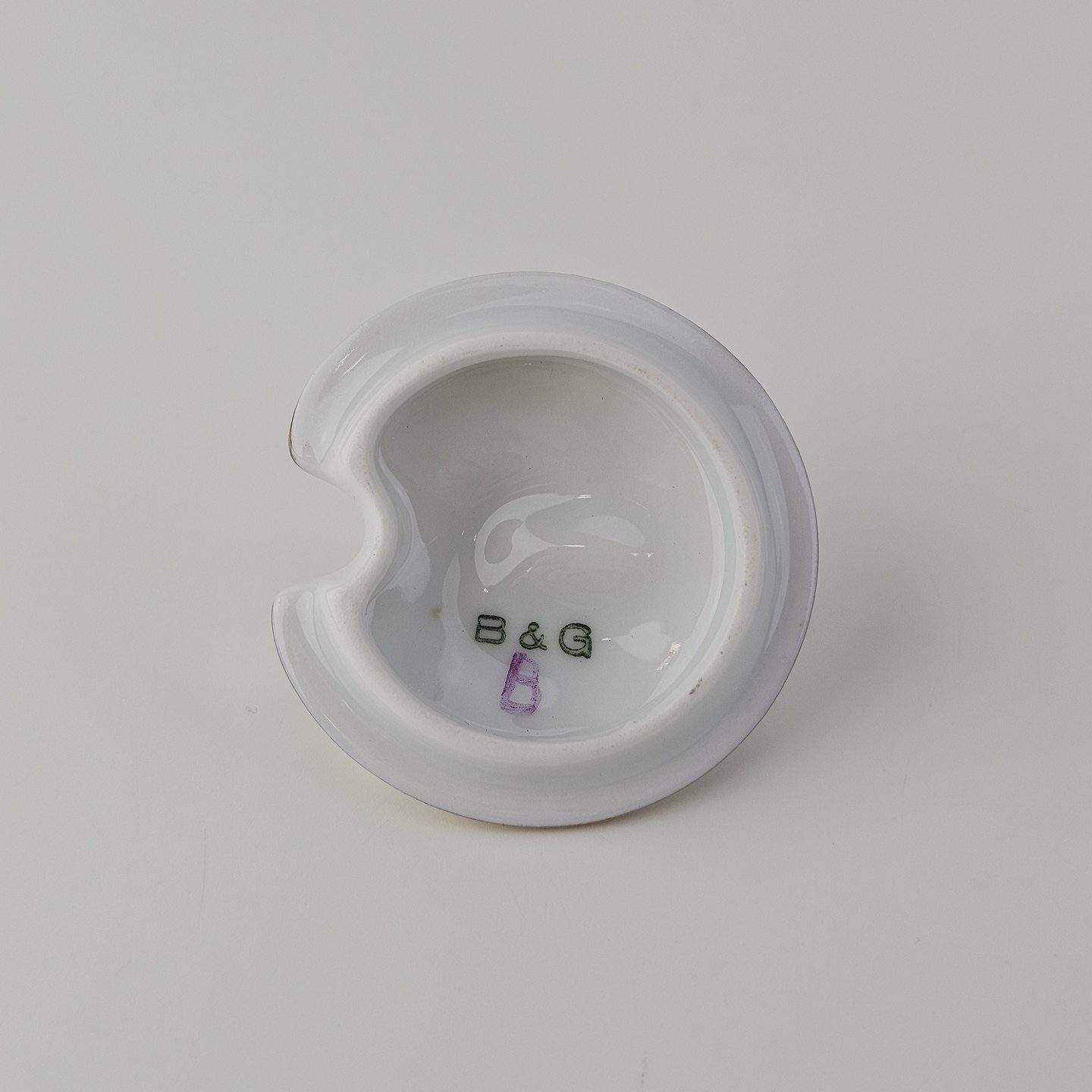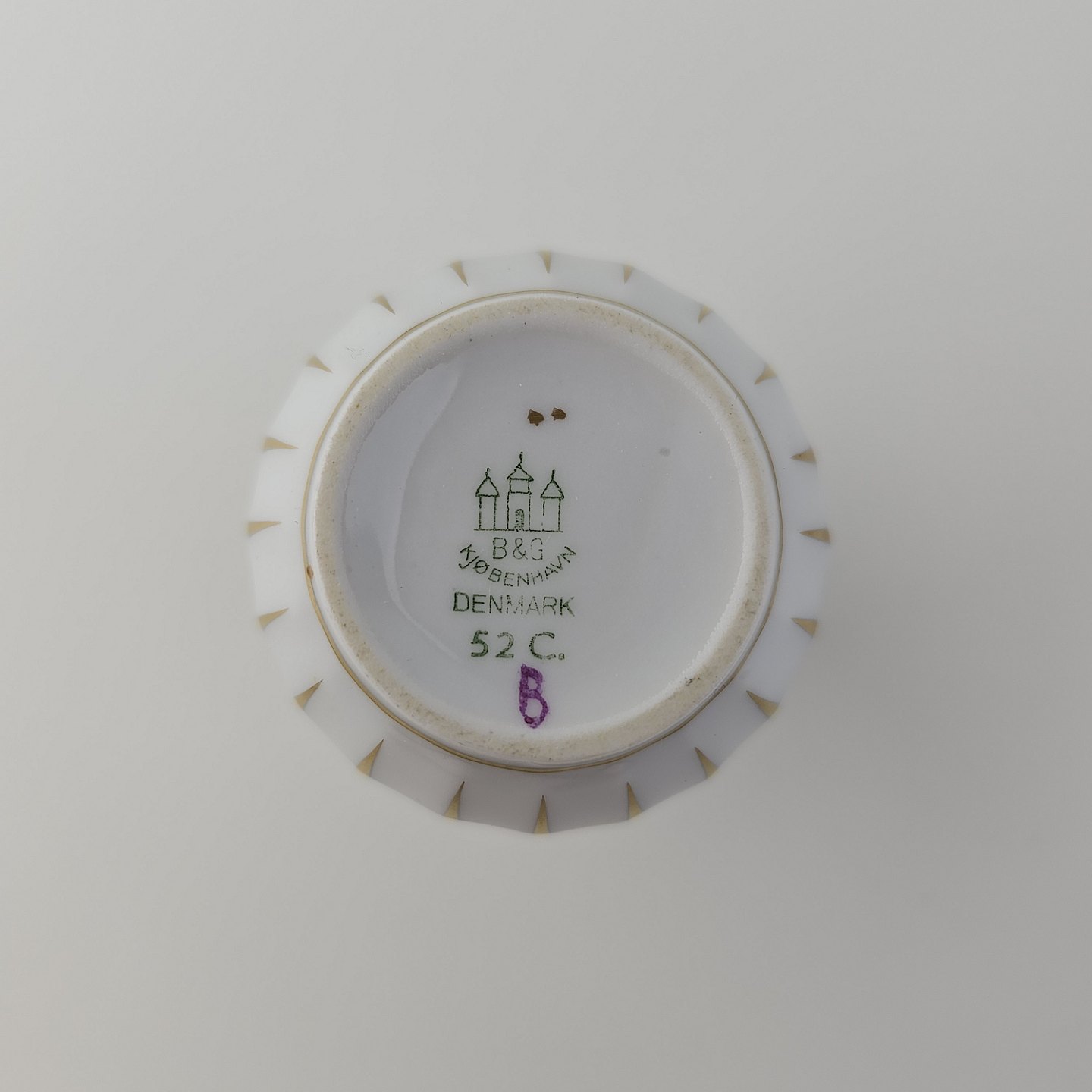 Antonius er af hvidt porcelæn med skælform dekoreret med håndmalede blå anemoner og guldkant. Også kendt under navnet Blå Anemone.