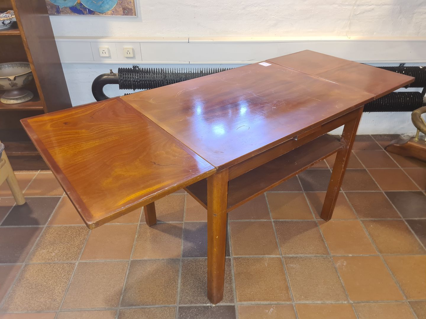 Dansk møbelsnedker sofabord m. hollandsk udtræk. Udført m. plader i fineret mahogni.
