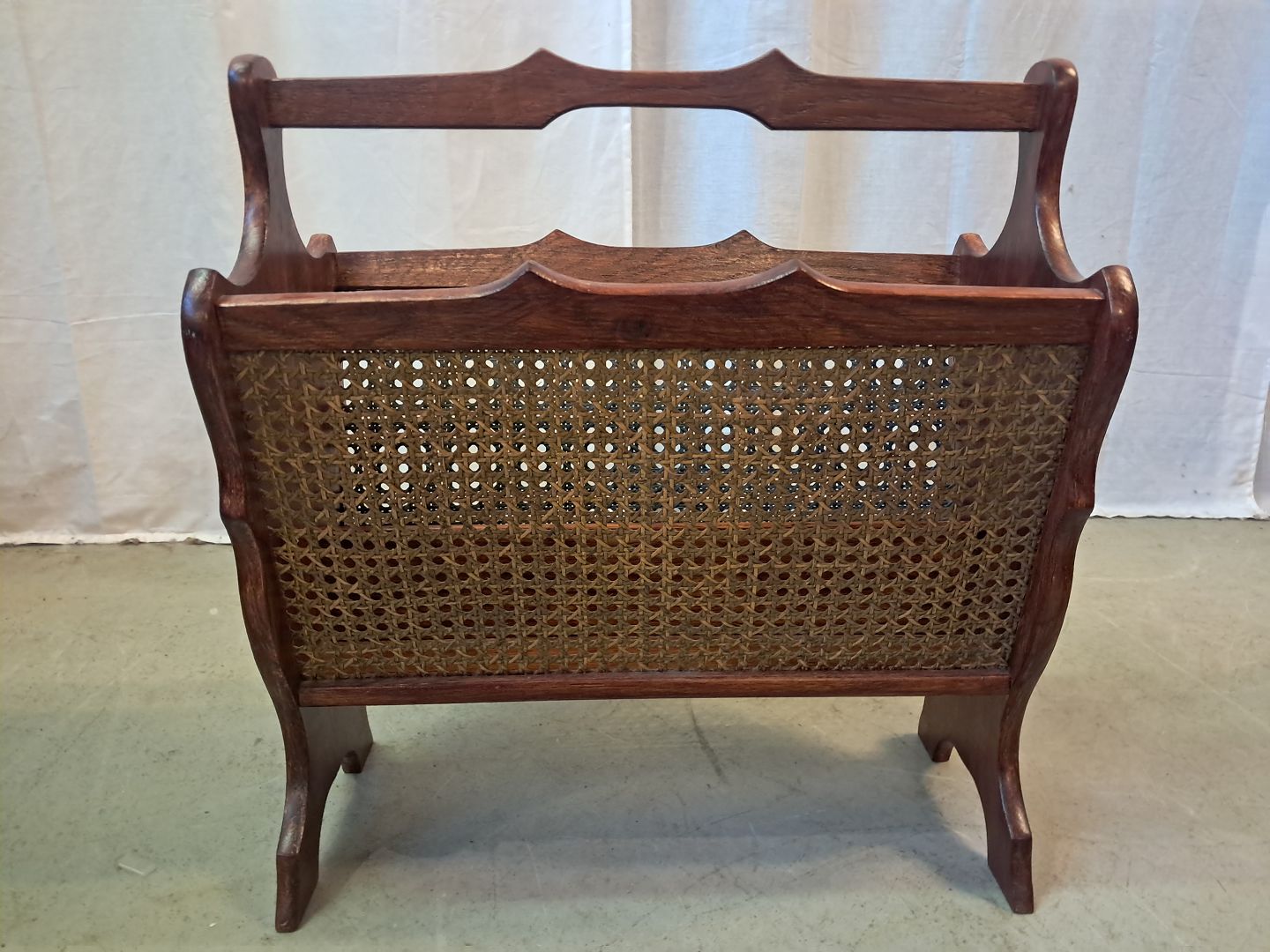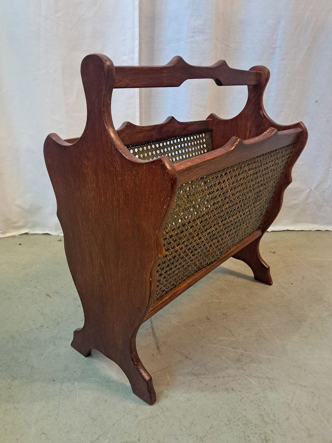 Avisholder i bejdset massivt egetræ med rørflet, fra 1990erne.