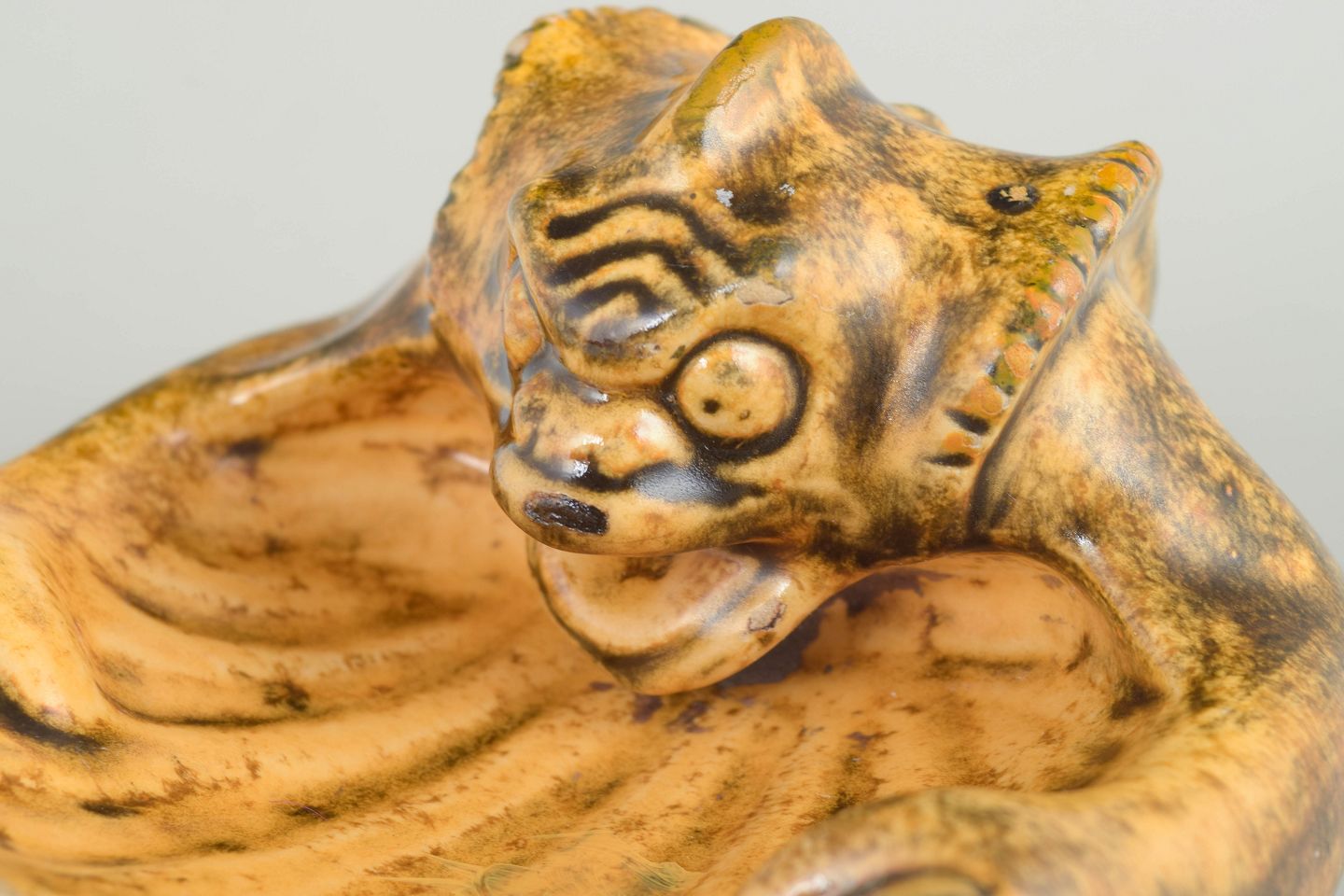 Small stoneware figurine with uranium glaze, commonly referred to as “Devil” in collector terminology, produced for the Kähler workshop in the late 19th century.