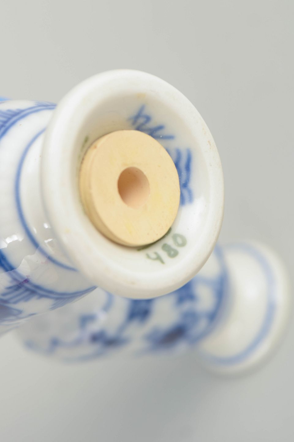 Salt- og peberbøsser i håndmalet underglasurblå dekoration i det klassiske Musselmalet riflet-stel. Modeller 1/467 og 1/480. 1. sortering.