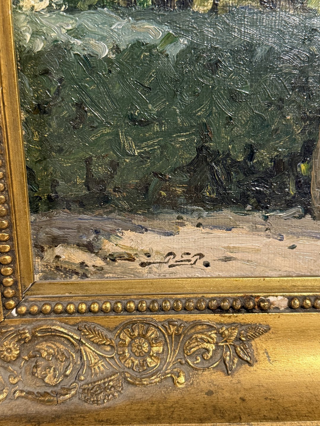 Peter Elias Petersen (1859 - 1950), Olimaleri på lærred, Baggårdsmotiv formodentlig fra København, signeret P.E.P. og bag på påskrevet P.E.Petersen 1922, Mål: 39x45cm *Et par små afslag på rammen ellers fin stand*