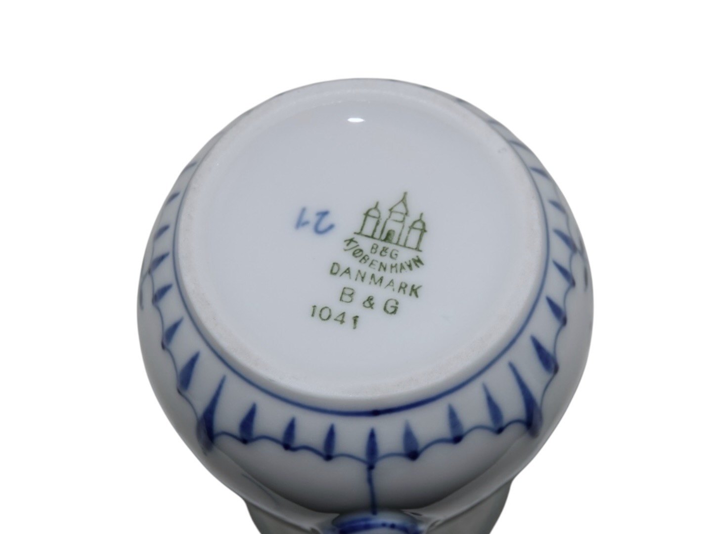 Bing & Grøndahl Blåmalet / Musselmalet tykt jernporcelæn med Riflet mønster, flødekande.