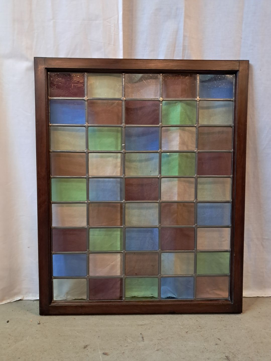 Blyindfattet rude med ramme i massivt fyrretræ, fra 1970erne.
