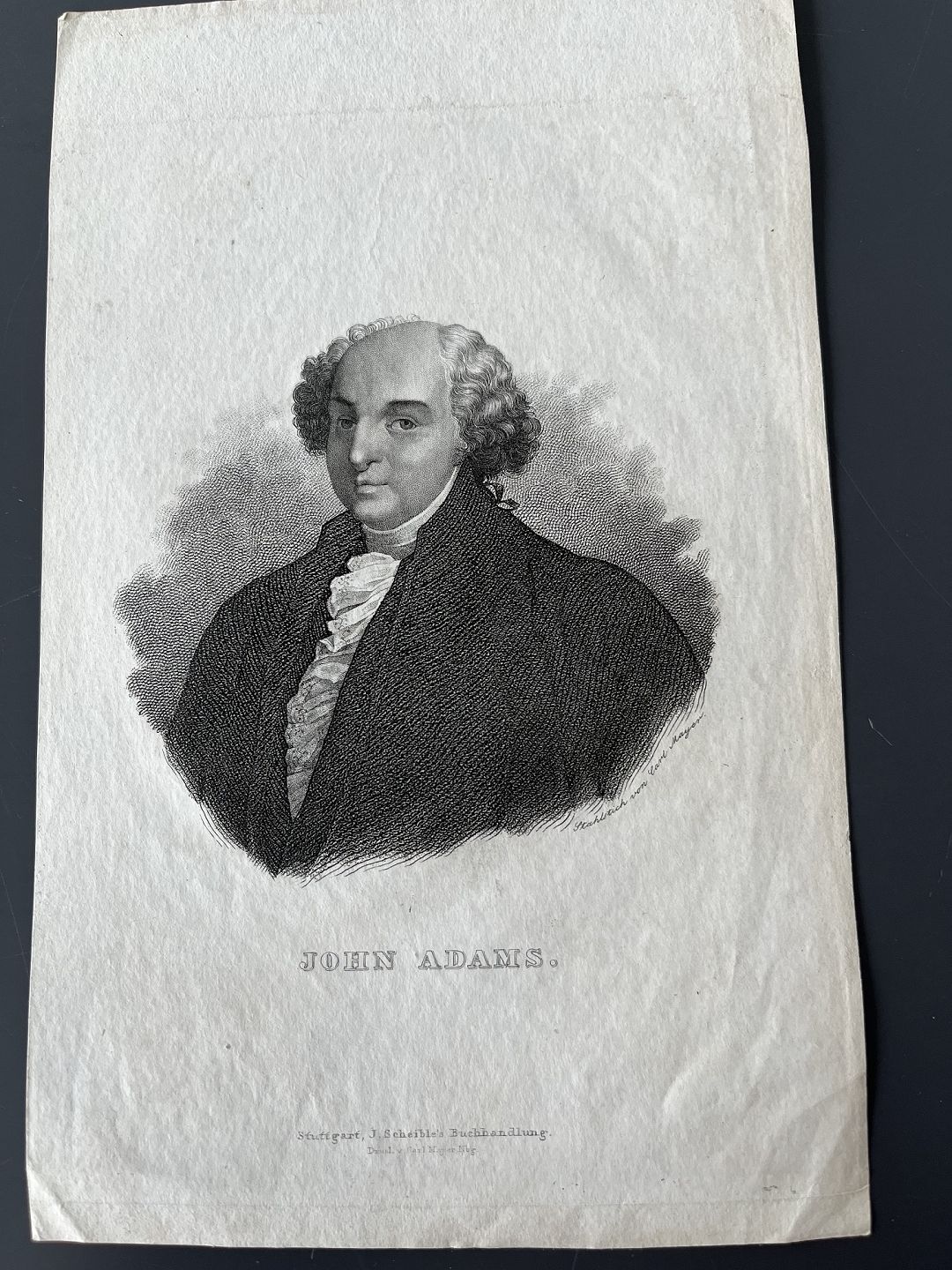 Stålstik af Carl Mayer - Portræt af den anden Præsident i USA John Adams.
