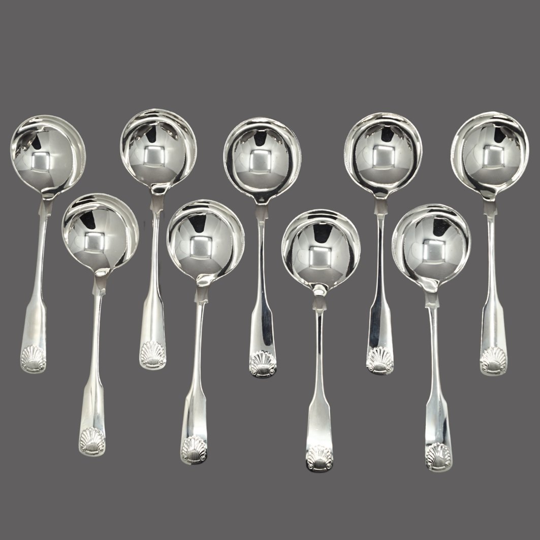 Set of 9 Clam bouillonspoons in silver |
