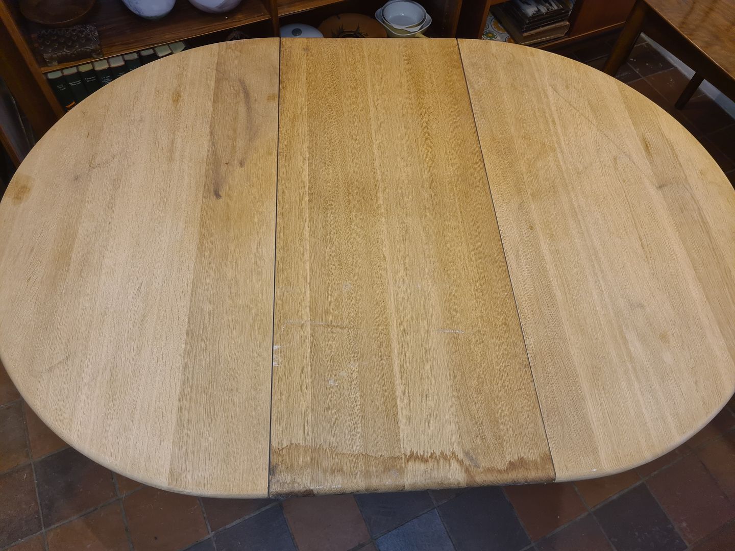 Brugt stand, fremstår med brugsspor, ridser og mærker. Samt tidligere fugtskade på tillægsplade. Se foto.