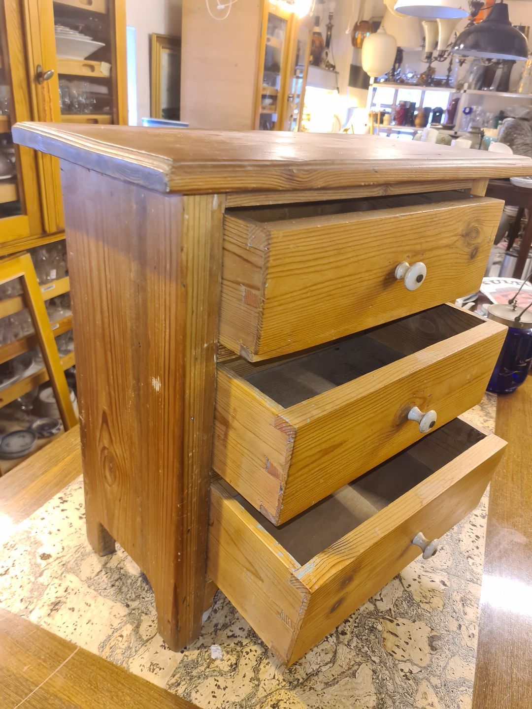 Lille kommode i massiv fyrretræ.