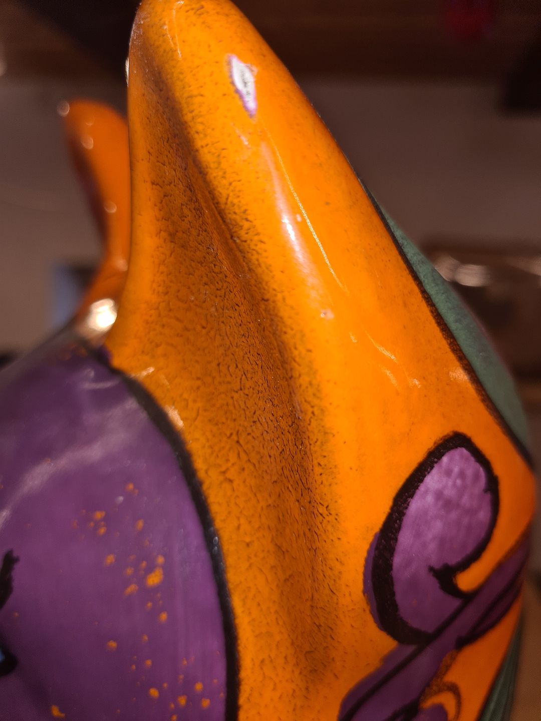 Fremstår i pæn stand, dog med mindre chip på øret.