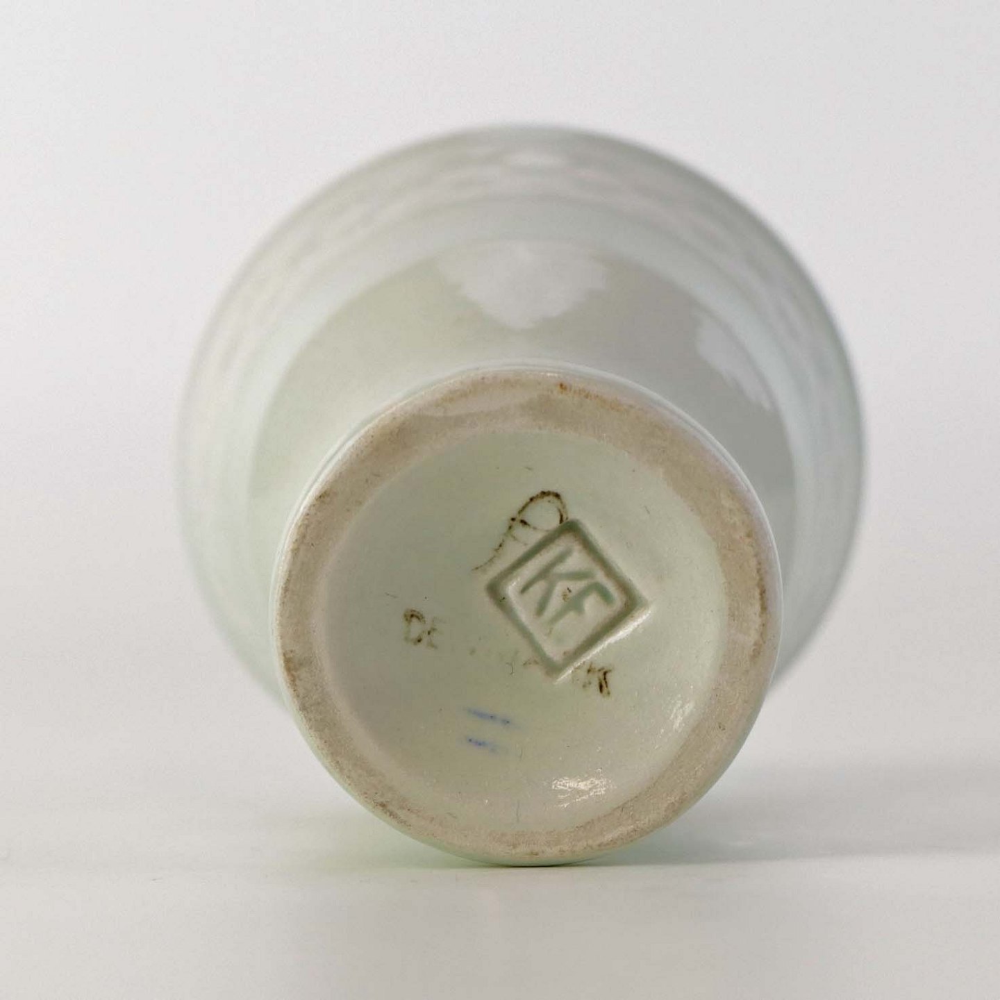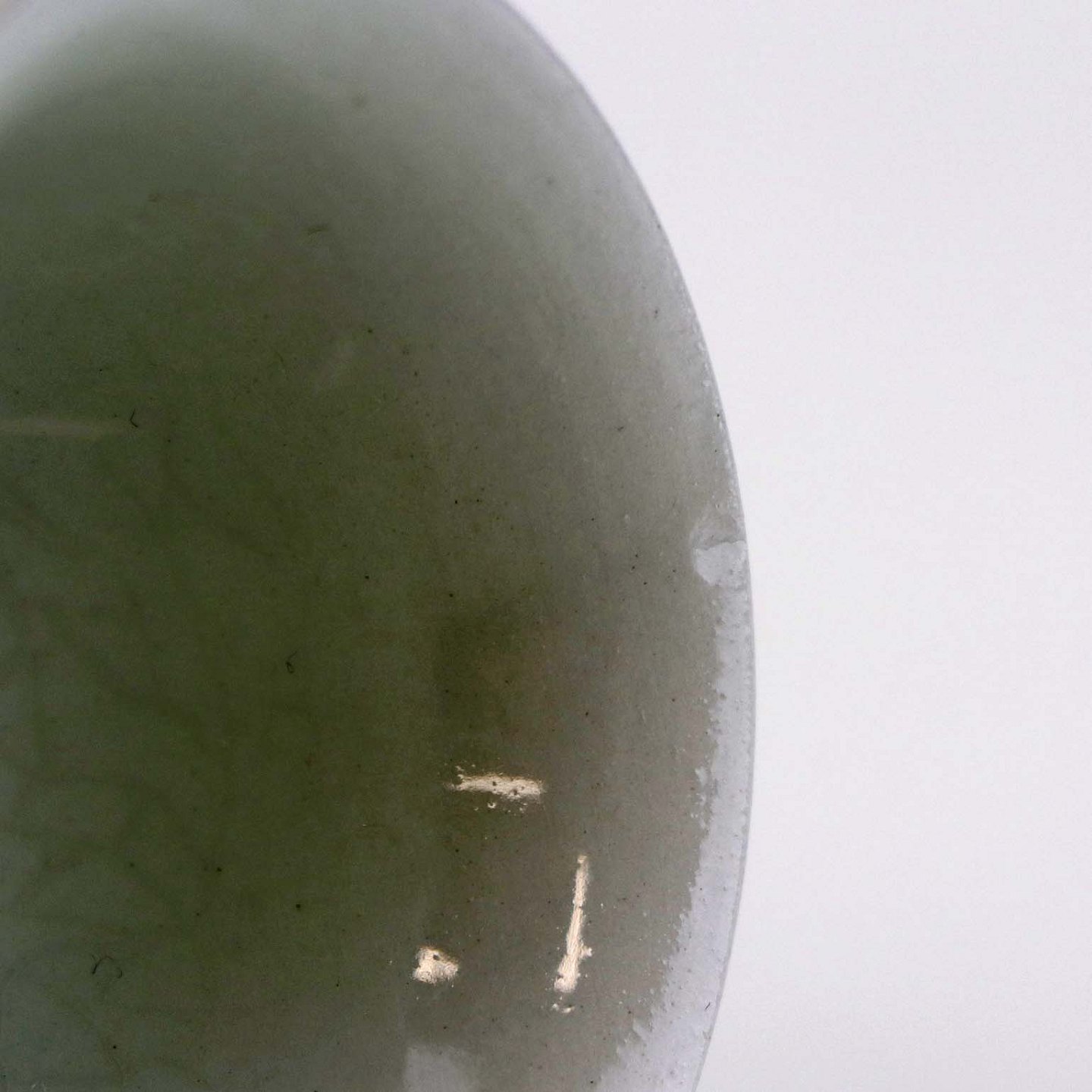 Fremstår med mørkning på glasuren, krakkeleringer i glasuren samt mindre fejl støbningen ved toppen.