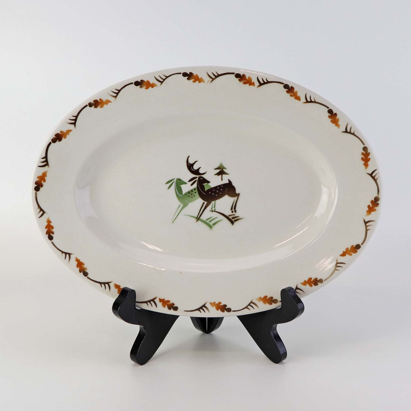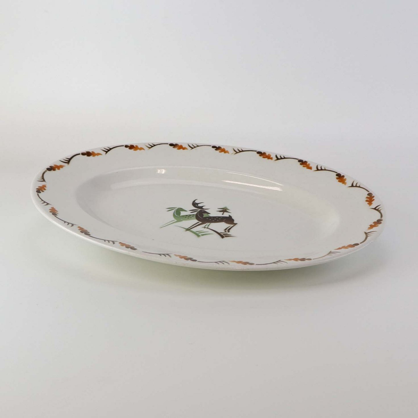Lille ovalt fad i fajance fra Hjortestellet Convolvolus, som blev fremstillet i perioden 1930-1940