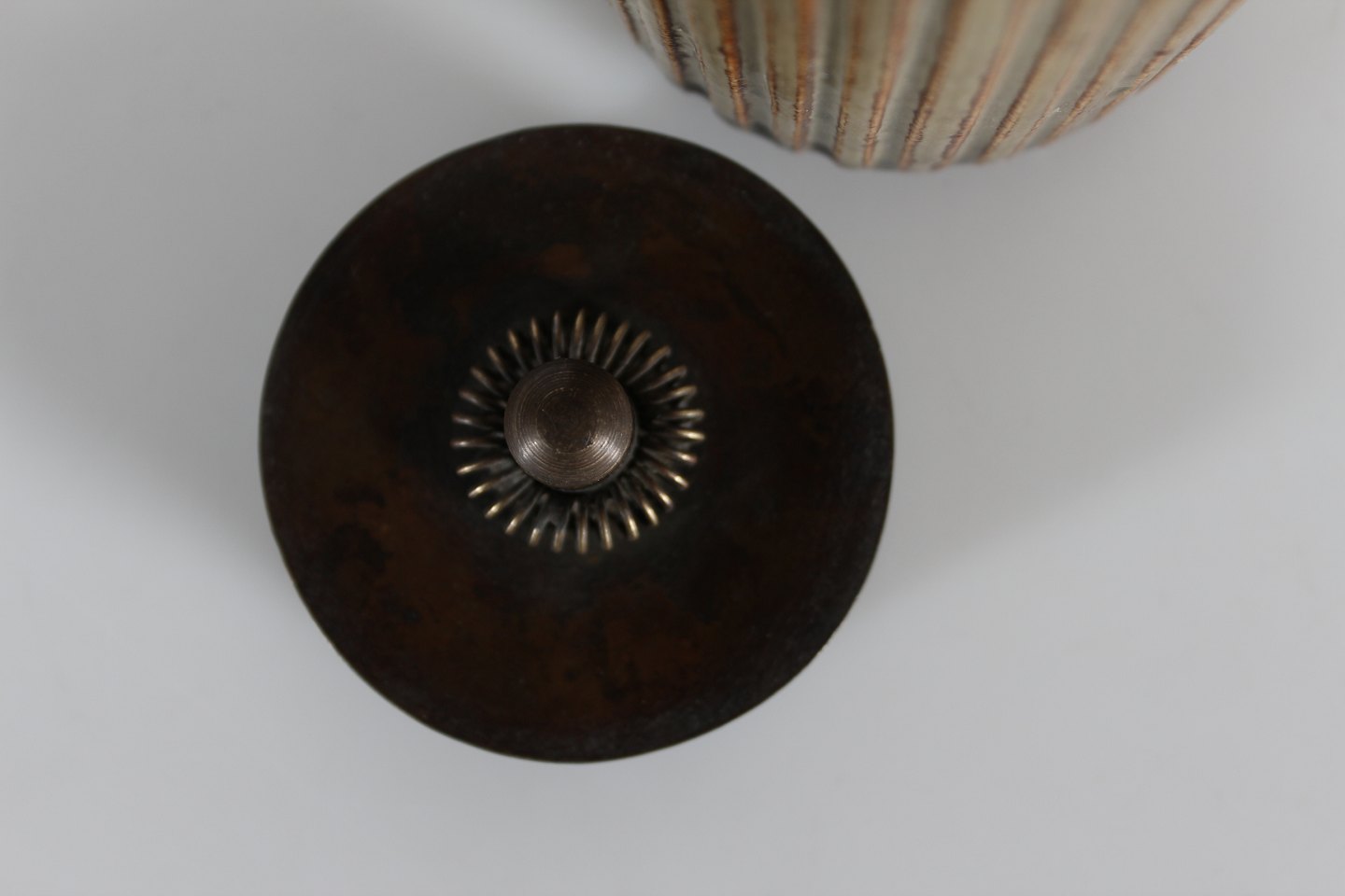 og låg af patineret bronze