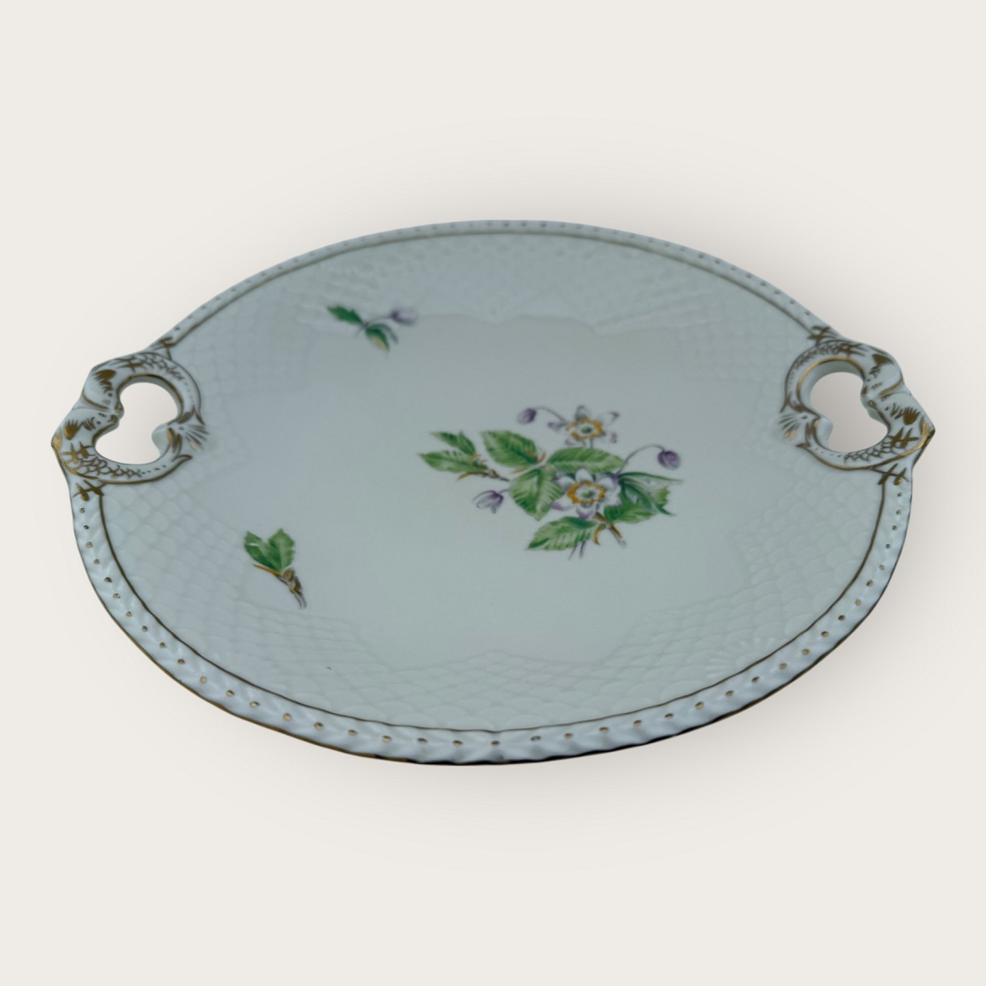 | Bing & Grøndahl, Frigga, Anemone, # 101, fad med hanke, diameter 26cm, 1. sortering *Pæn stand*