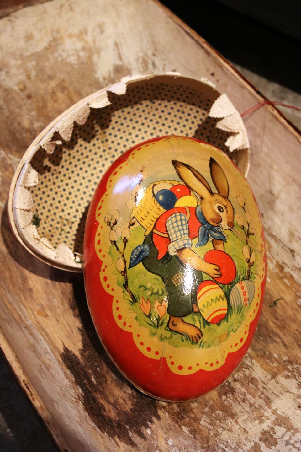 Old Easter egg in painted cardboard from the early 1900s...