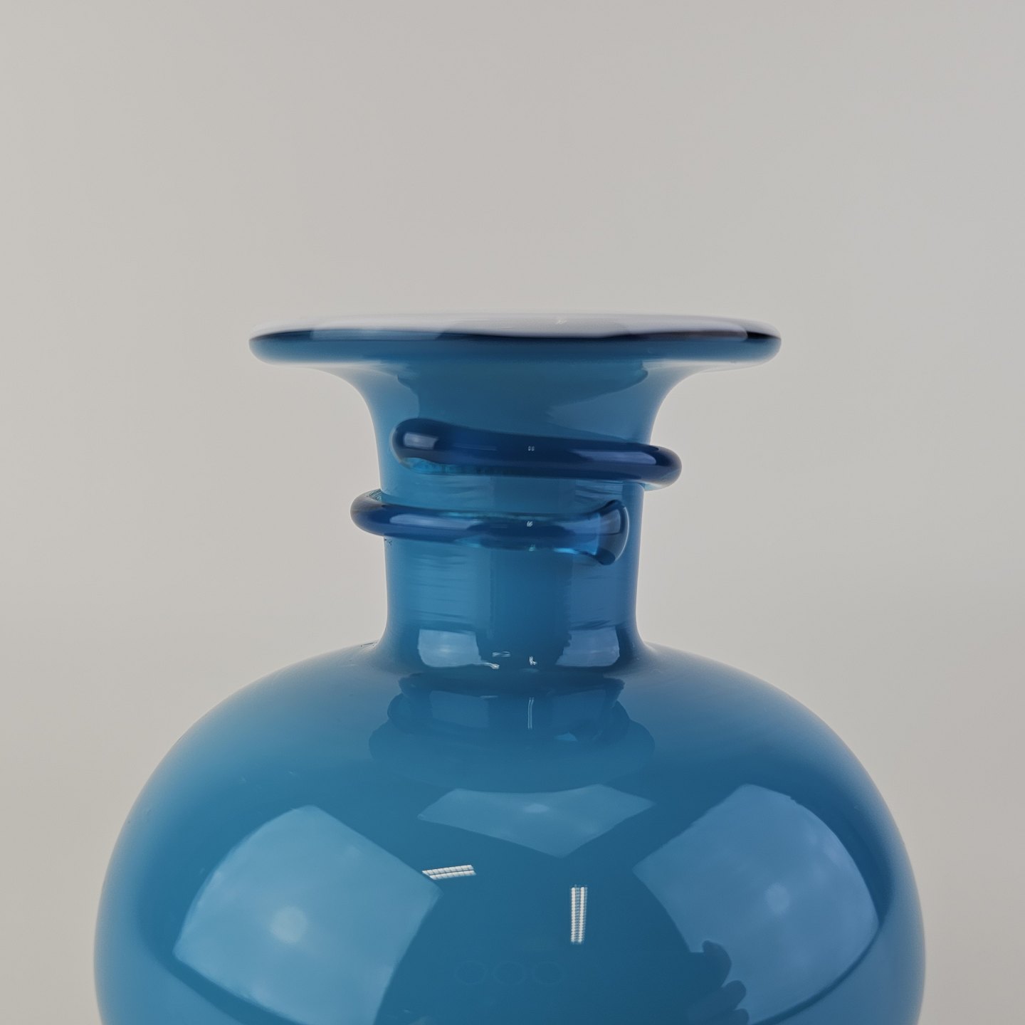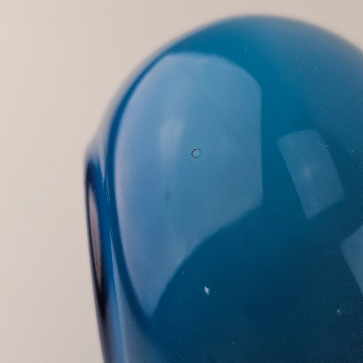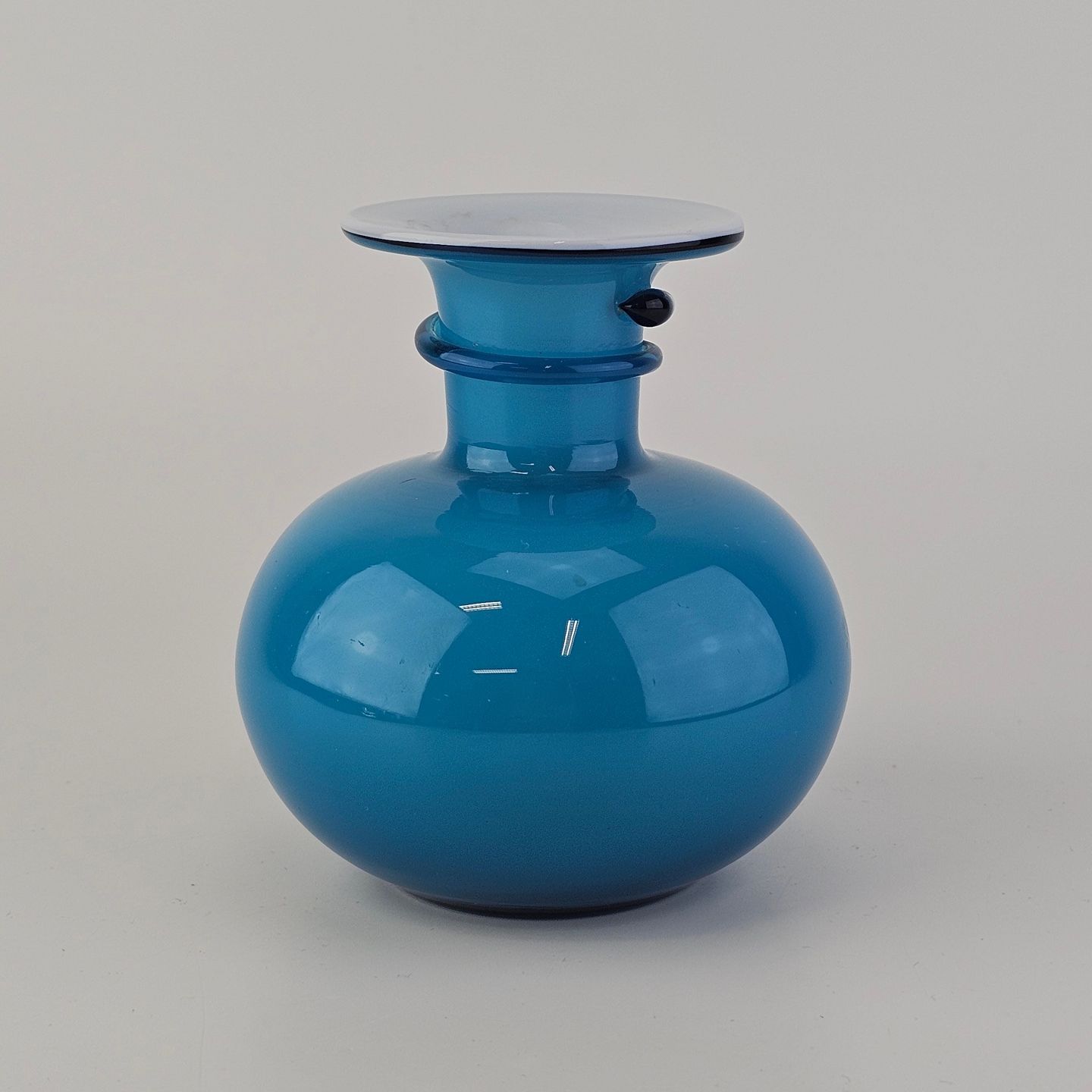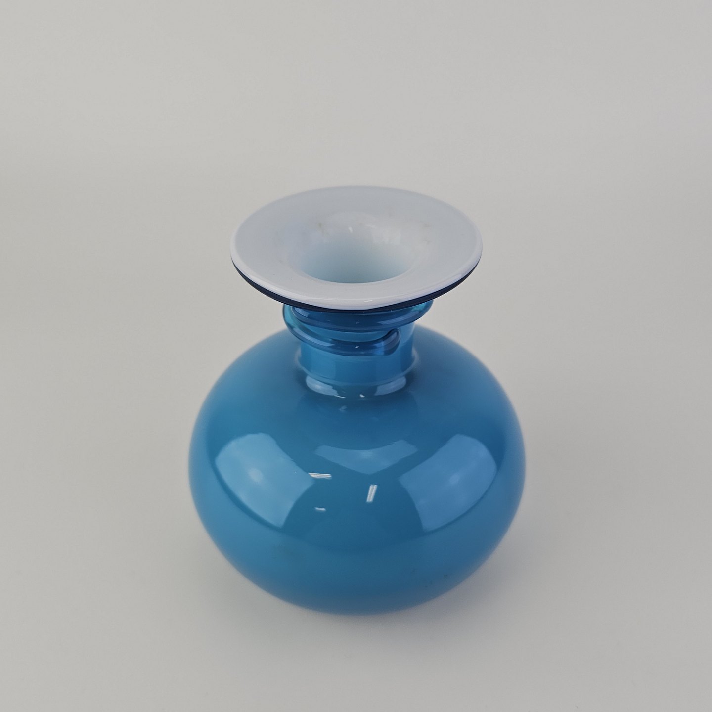 Kugleformet Napoli glasvase i blåt opalglas med hvid inderside
