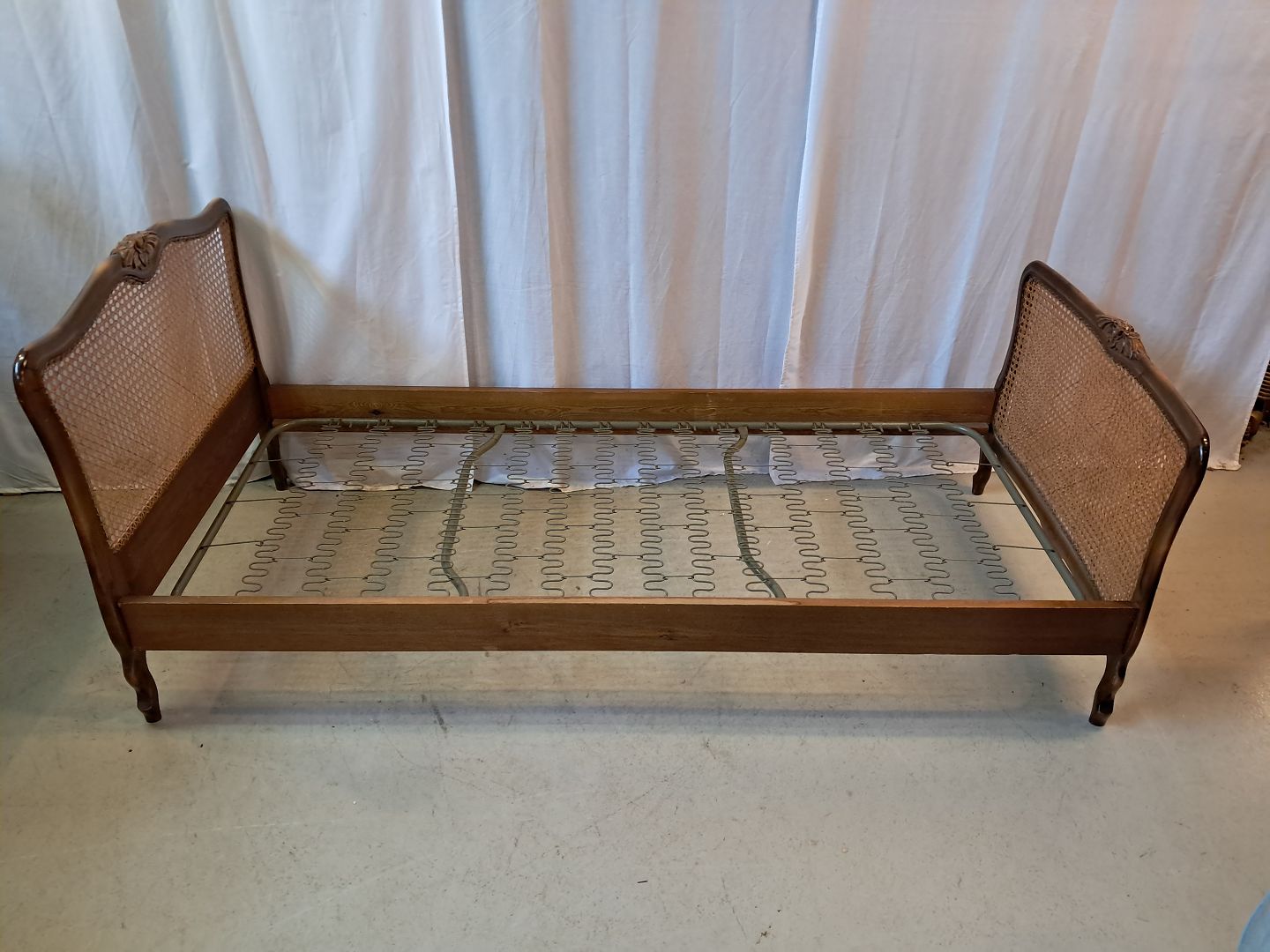 Den har brugsspor og der medfølger ikke madras.