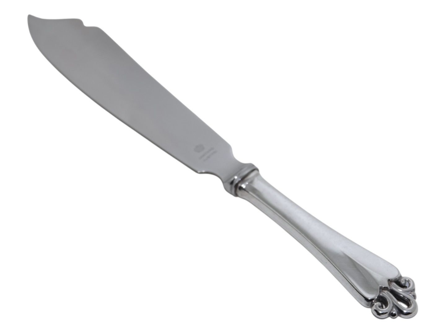Danish silver and stainless steel, ornamental cake knife from 1937.