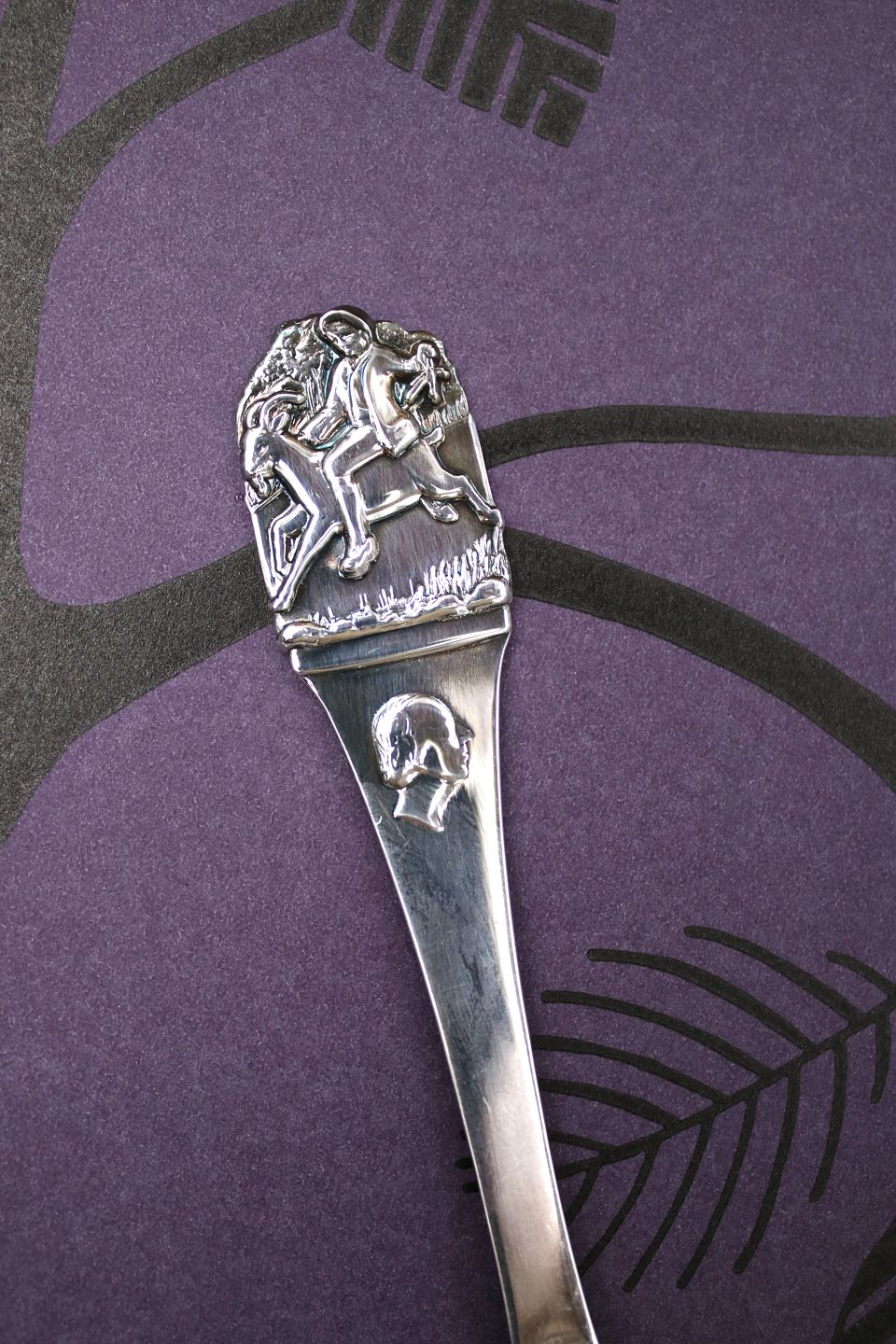 Barnegaffel i sølv (stemplet) med børnemotiver