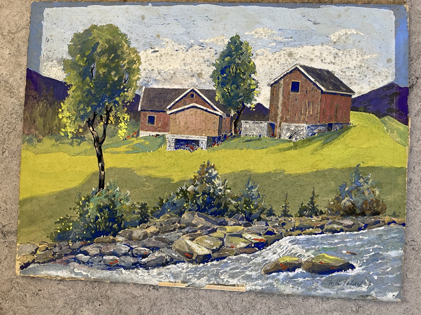 Maleri af den Fr. K. Scharf - Landskab fra Hjartdal, Telemark, Norge 1967.