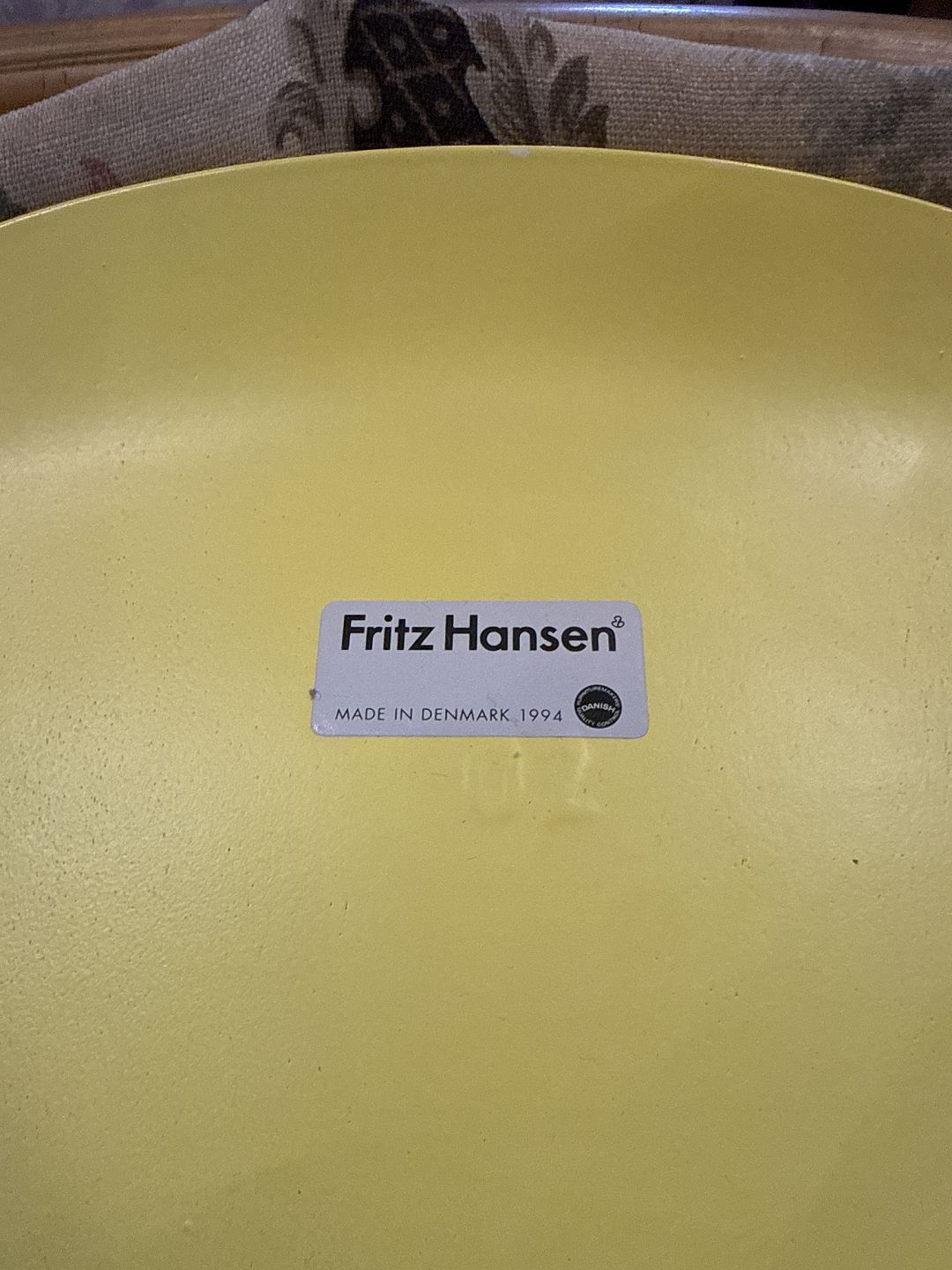 Arne Jacobsen Myrestol gul malet stel i forkromet metal.