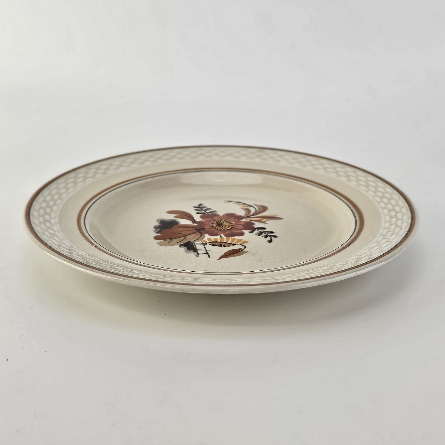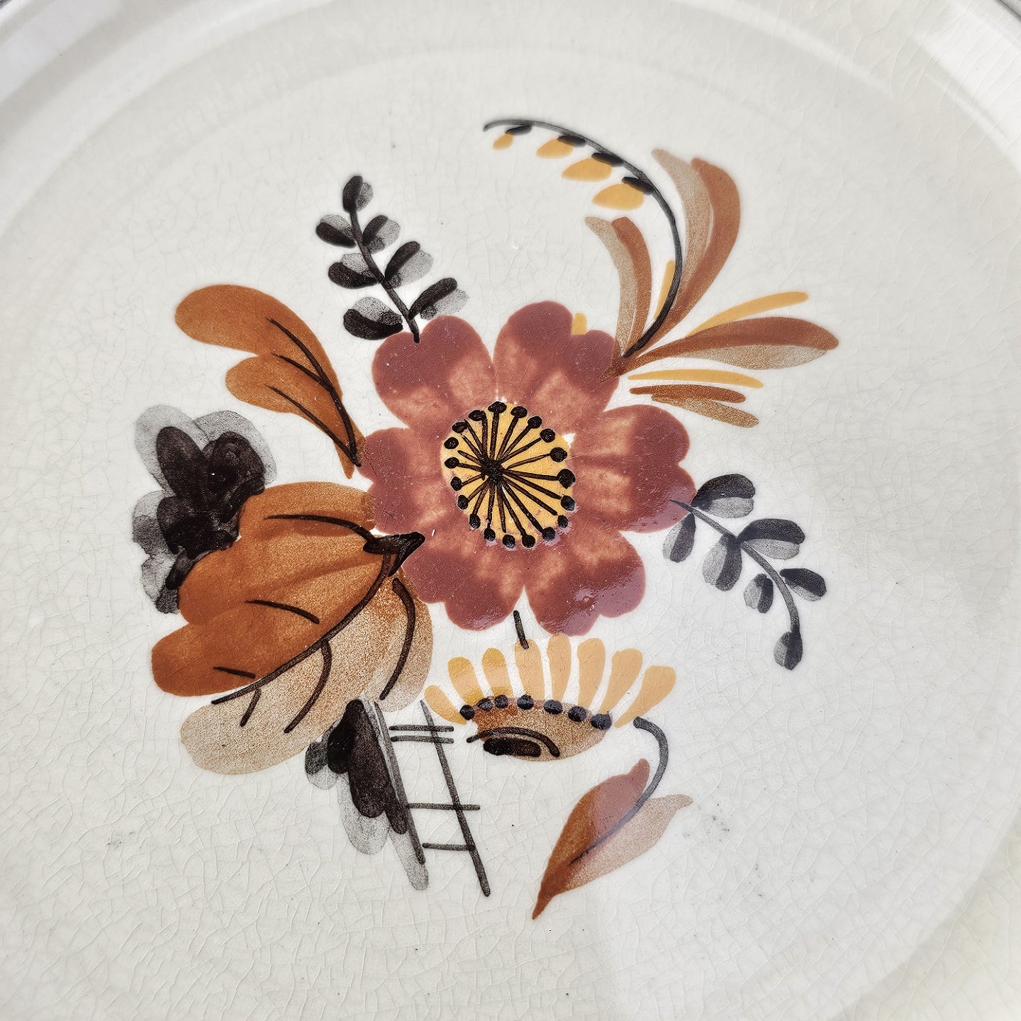 Knud er cremefarvet fajance dekoreret med flettet kant og brune og orange blomster. Stellet blev produceret i år 1934-1963.