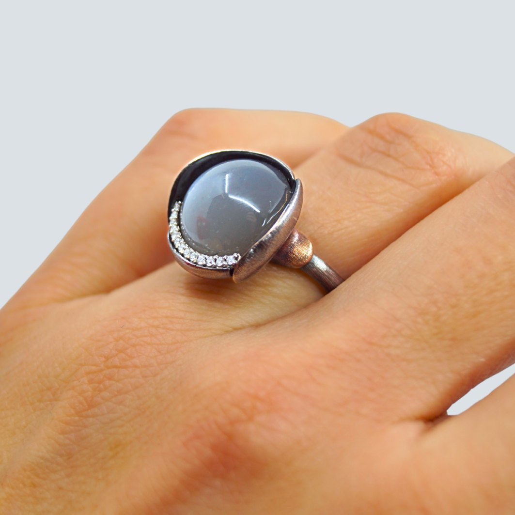 Ole Lynggaard; Lotus ring nr. 3. i sølv, med månesten og diamanter