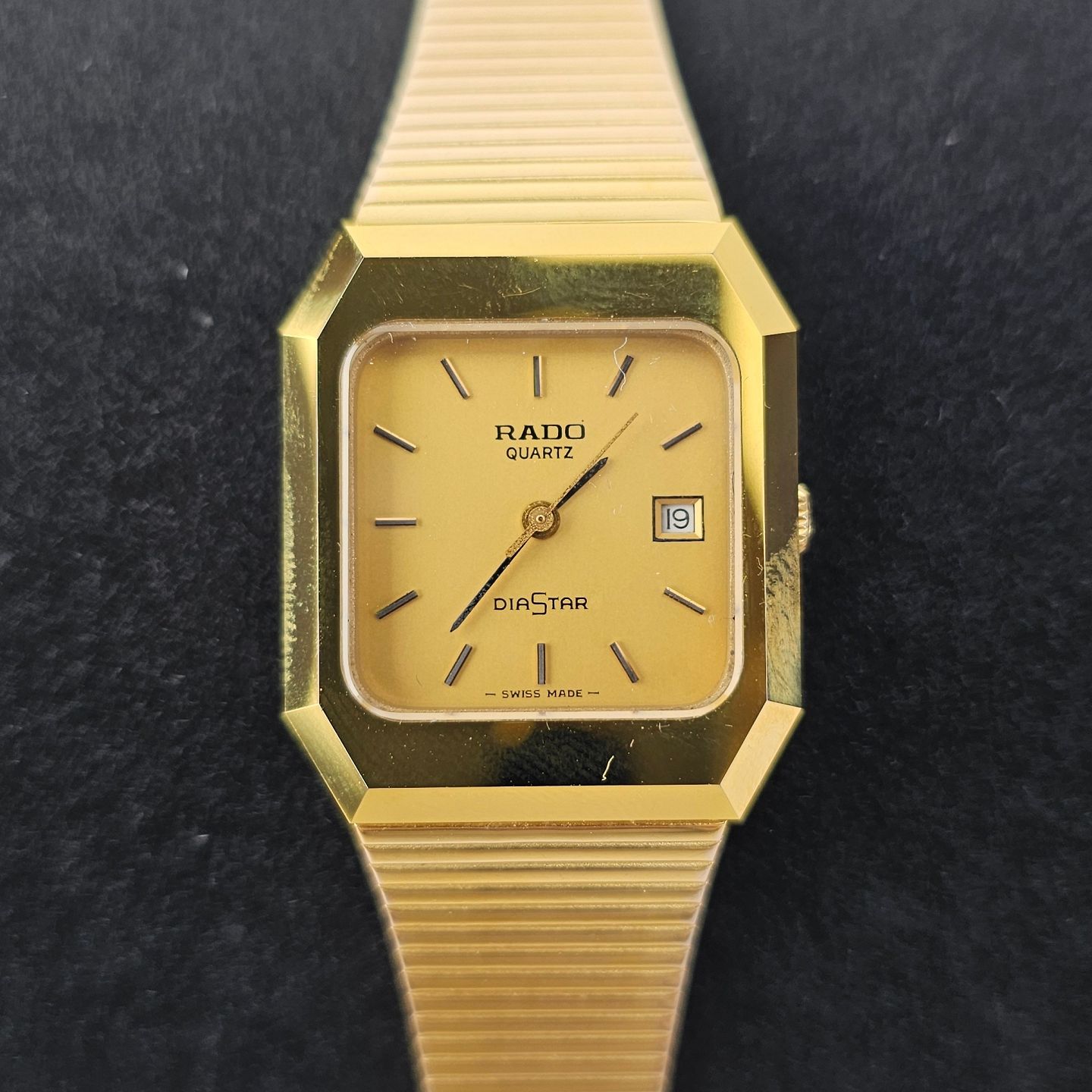 Armbåndsur i guldbelagt rustfrit stål. Mekanisk renset med nyt batteri, ikke vandtæt