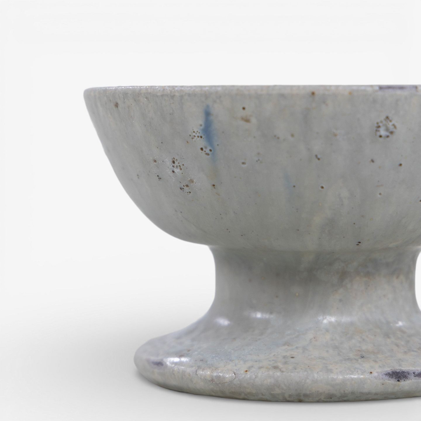 AB 406 - Lav lysestage i stentøj med lys glasur. Signeret.