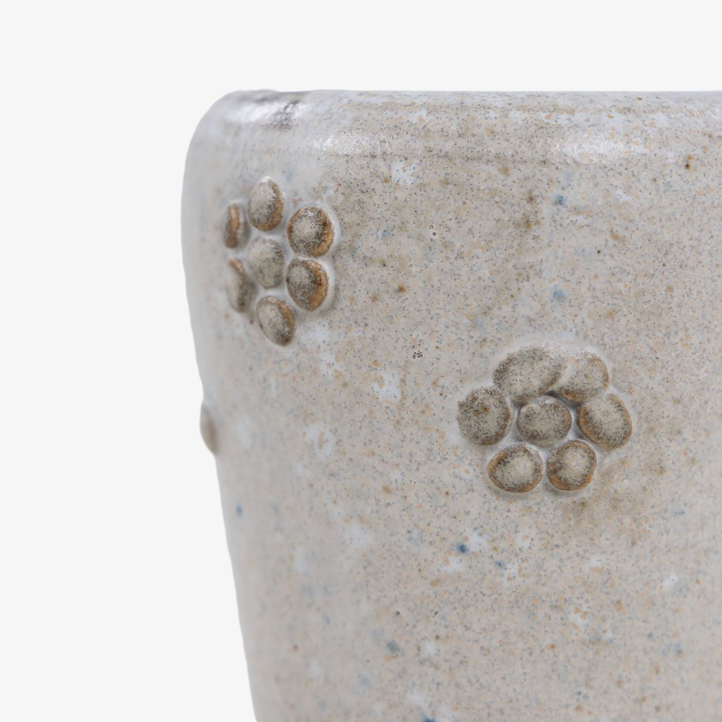 Vase i stentøj dekoreret med hvid glasur og blomstermotiv. Signeret.