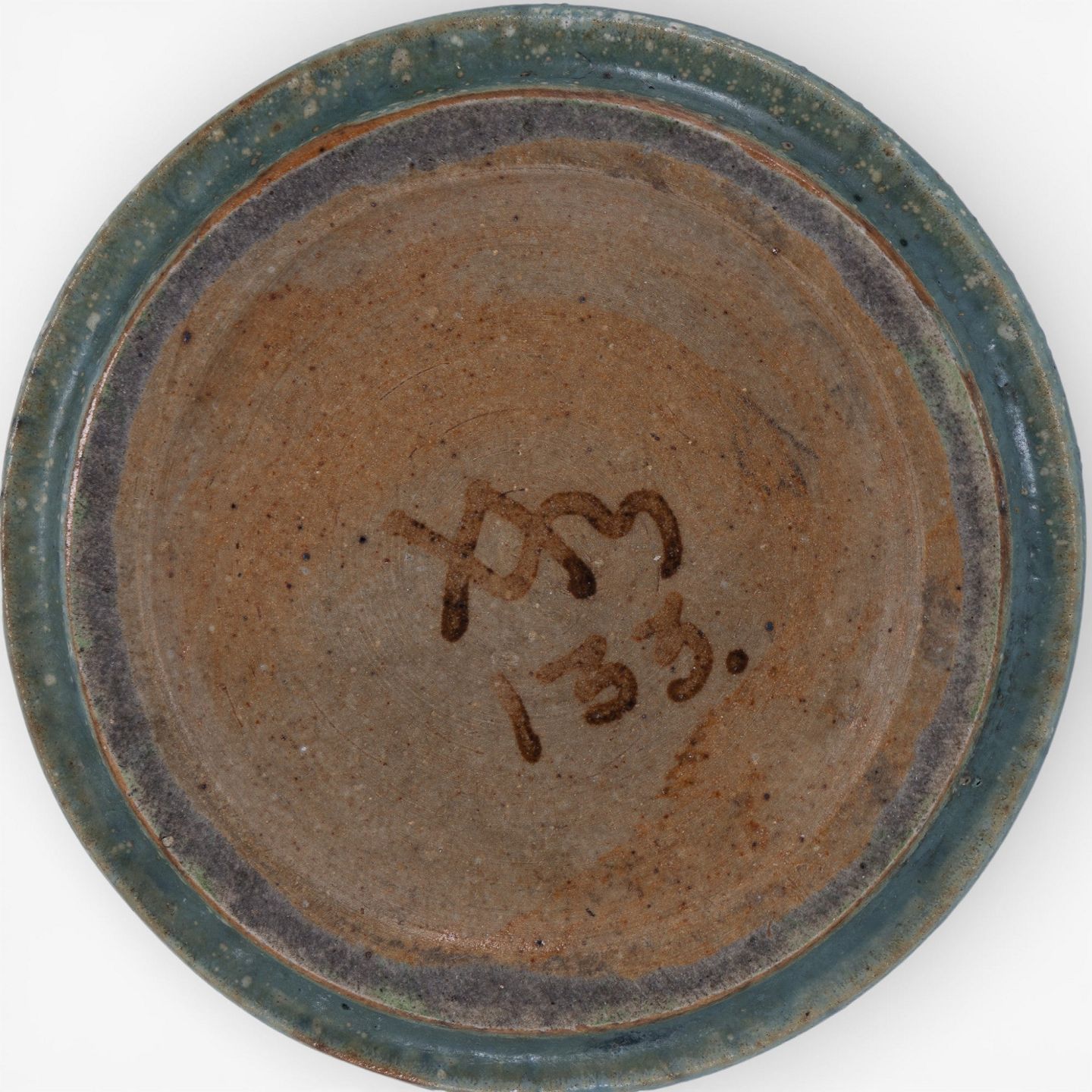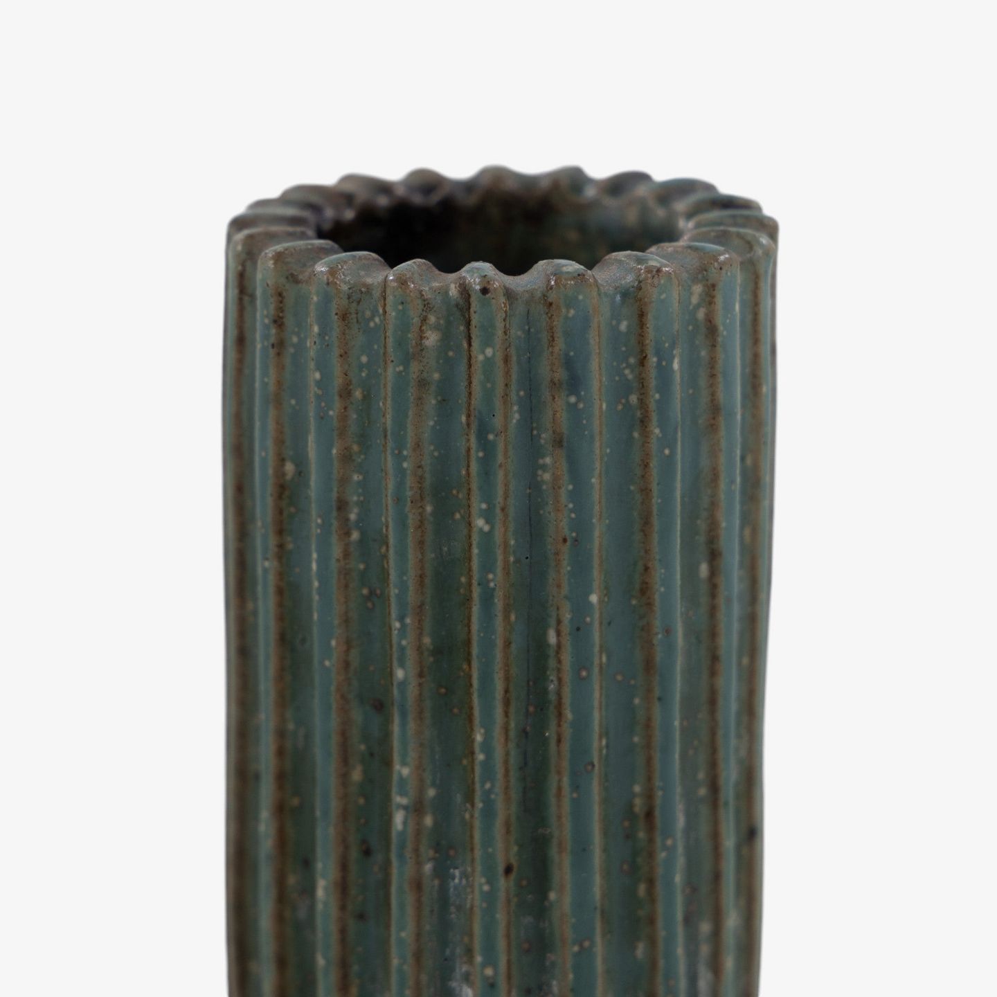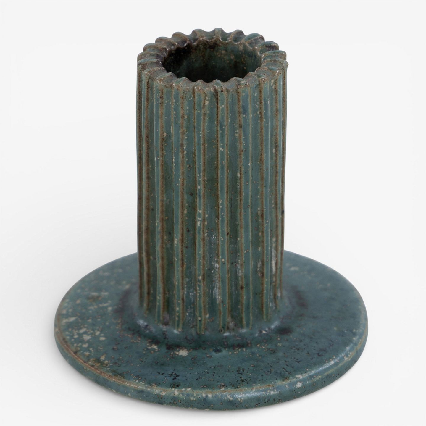 Model AB 133 - Lysestage i riflet stentøj med grønblå glasur. Signeret.