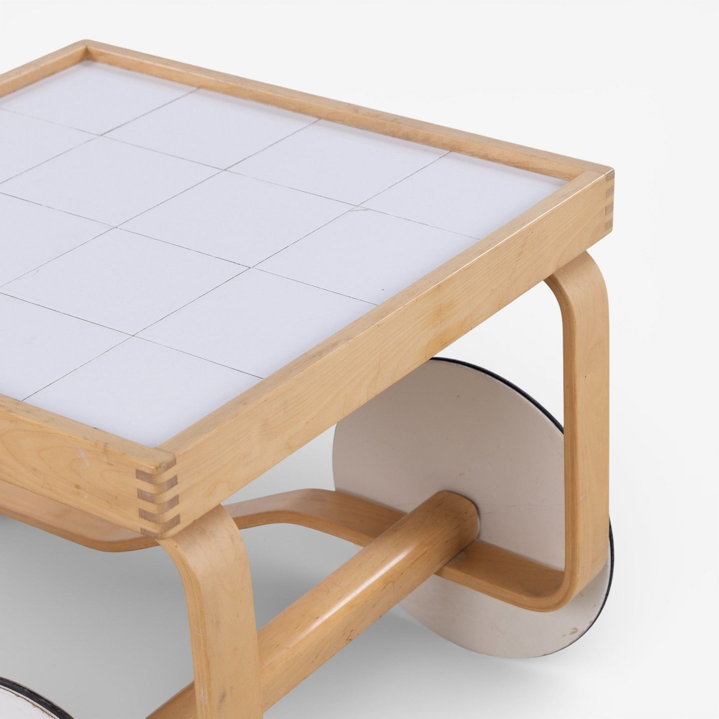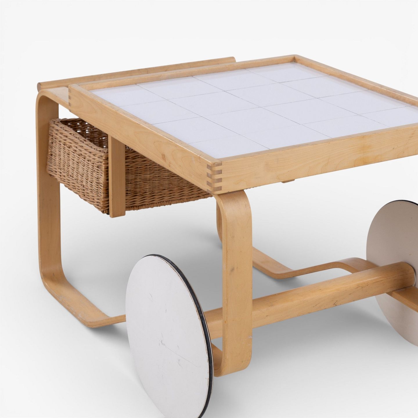 'Tea Trolley 900' - Serveringsvogn i patineret birk med hvide kakler.