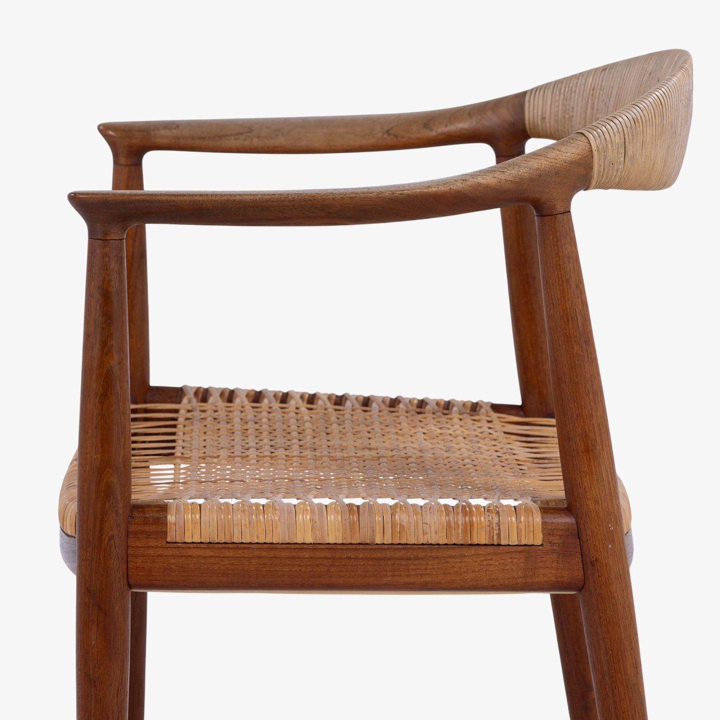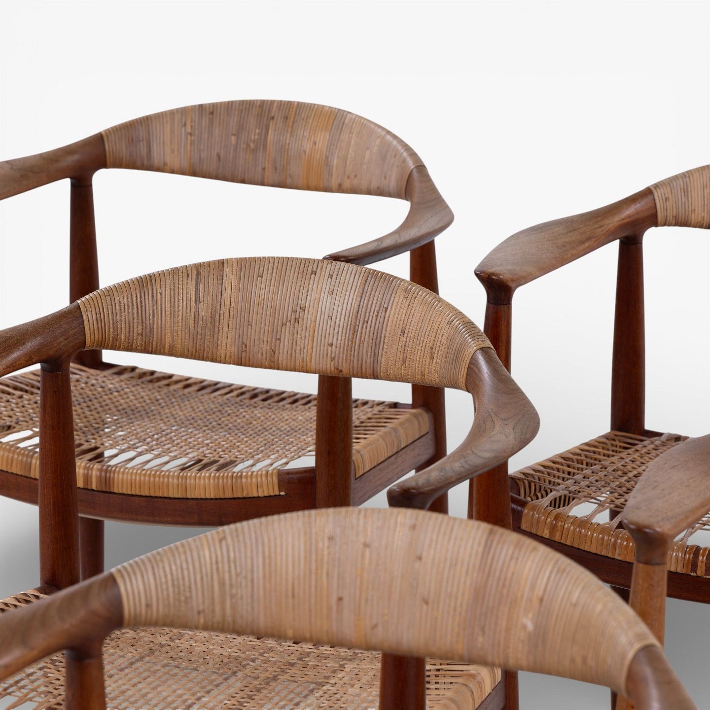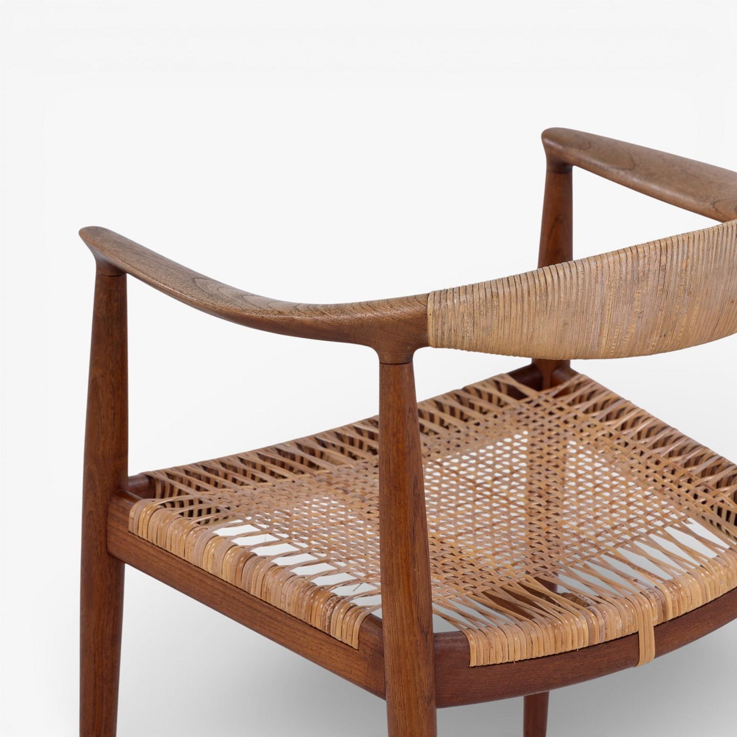 JH 501 - Sæt á 6 'The Chair'-spisestole i patineret teak med sæde og ryg i flet.