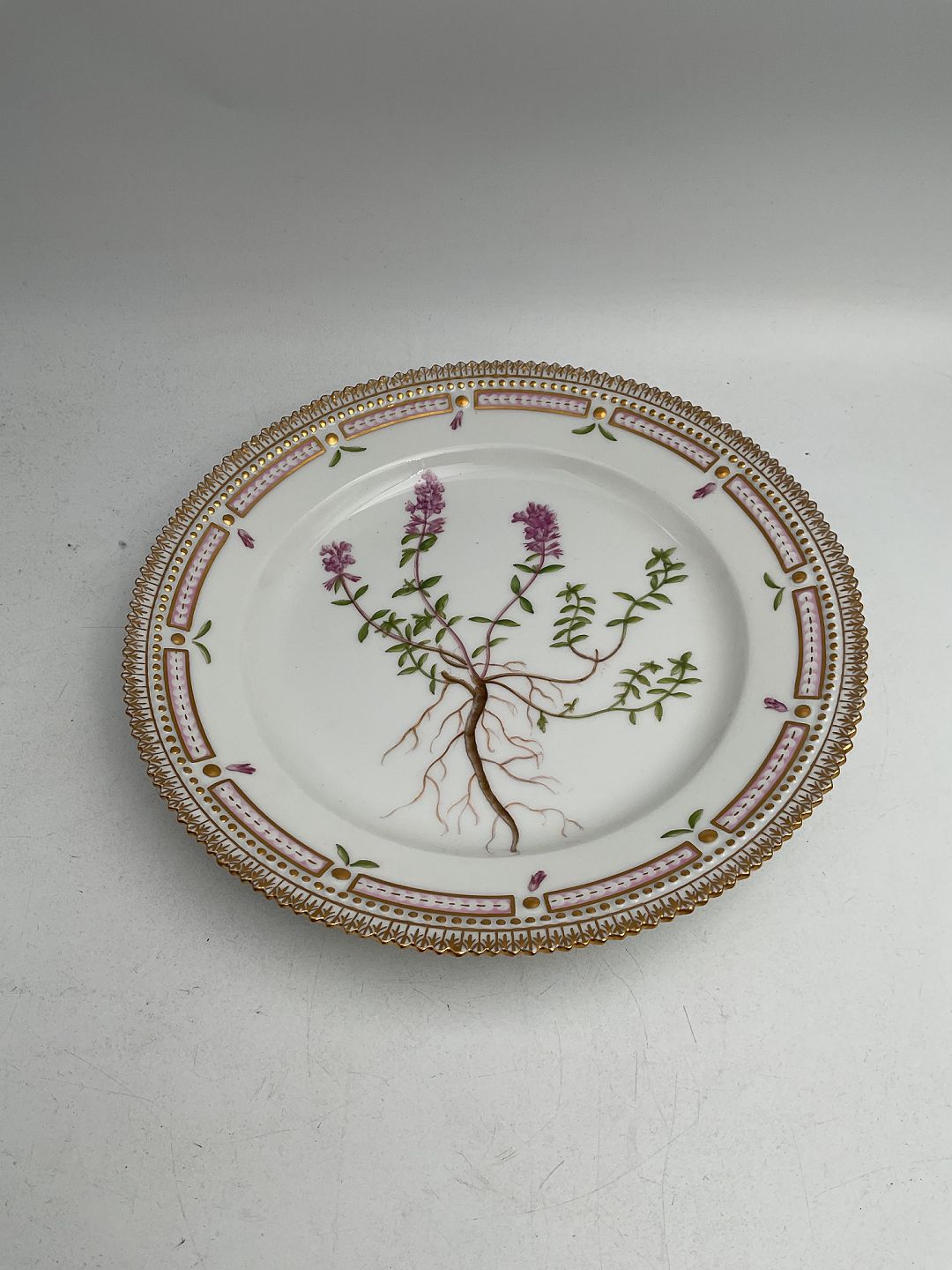 Royal Copenhagen Flora Danica Frokosttallerken No. 20/3550 Måler 22 cm. (8.66 inch) 1. Sortering. Latinsk navn: Thymus Chamaedrys Fr