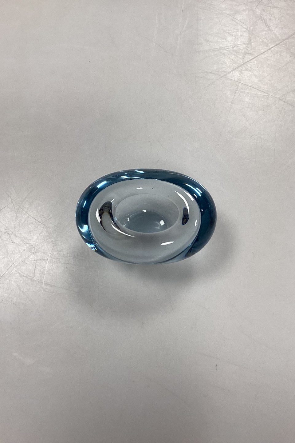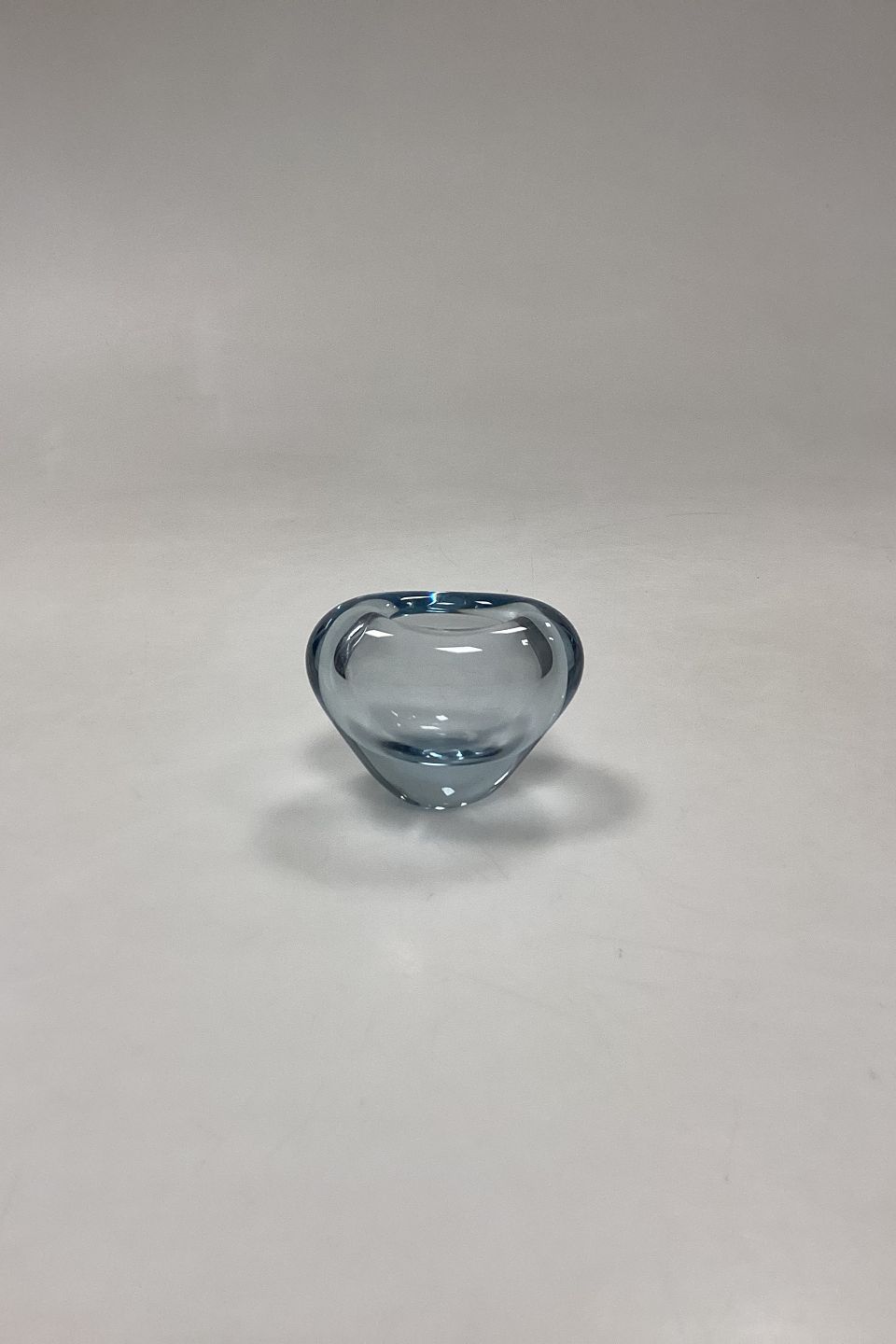 Holmegaard Menuet Glasvase. Farve: Akva. Form: Hjerte. Designet af Per Lütken. I produktion mellem 1955-85. Signeret PL 1962.