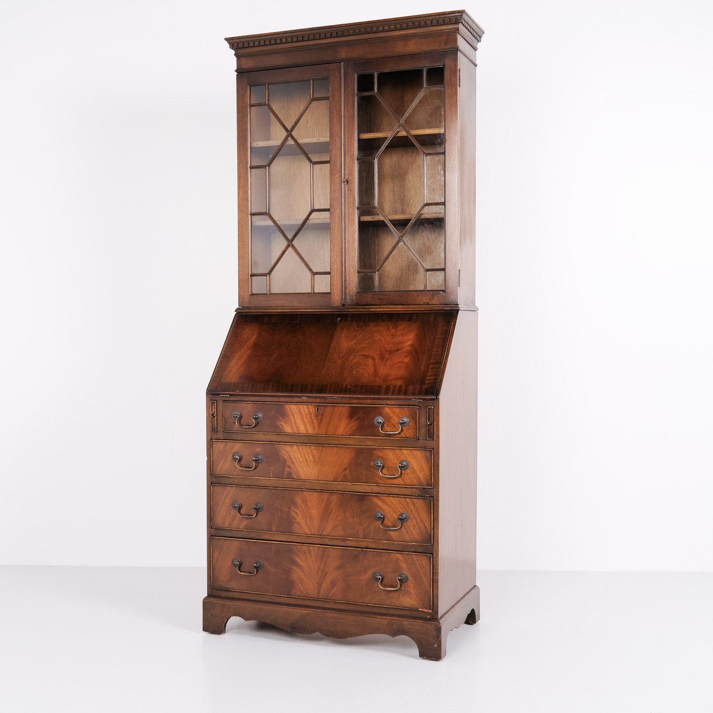 Sekretær med Skriveklap og Vitrine i Mahogni, Engelsk Stil år 1890