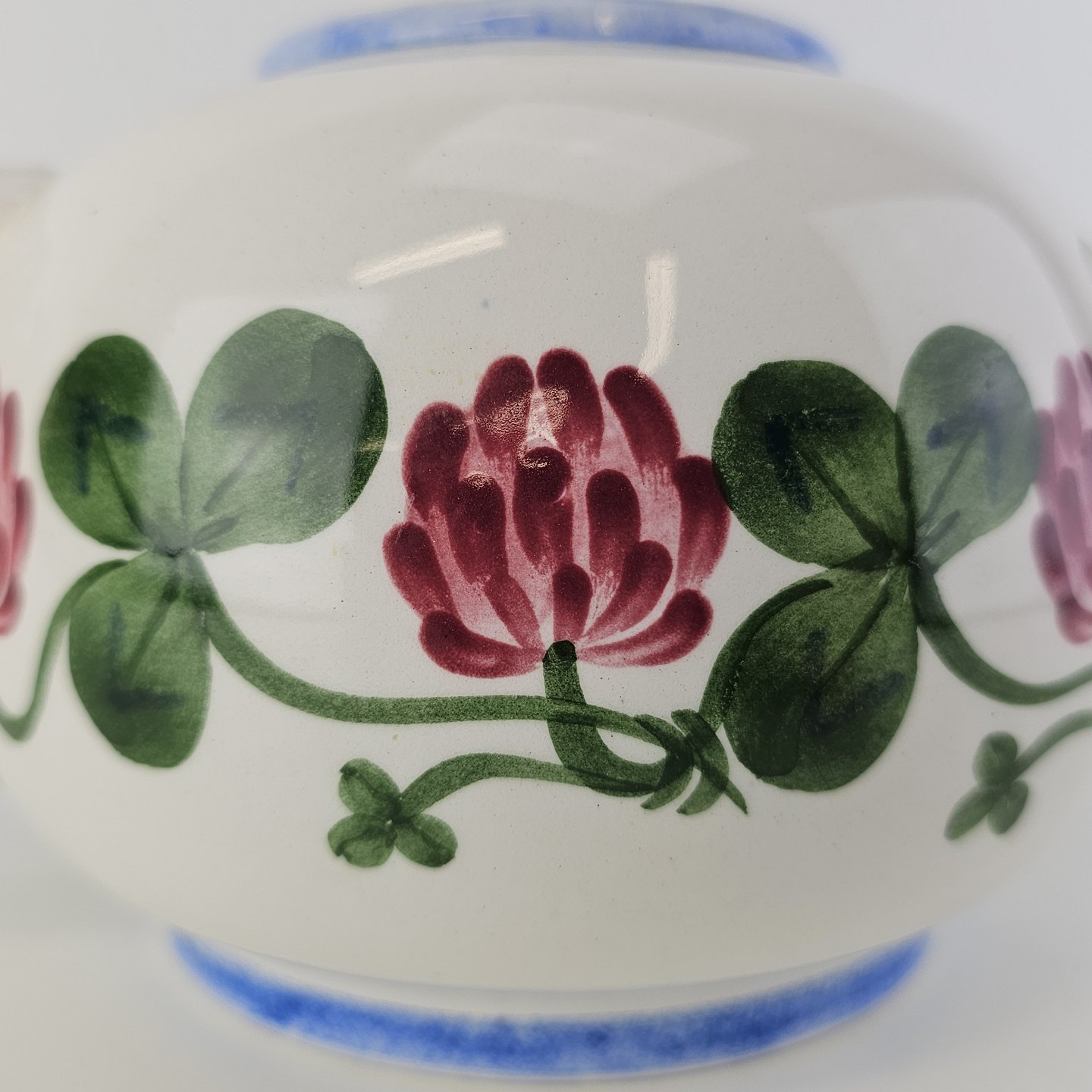 Kløver er fajancestel med motiv af rødkløver på lys baggrund.