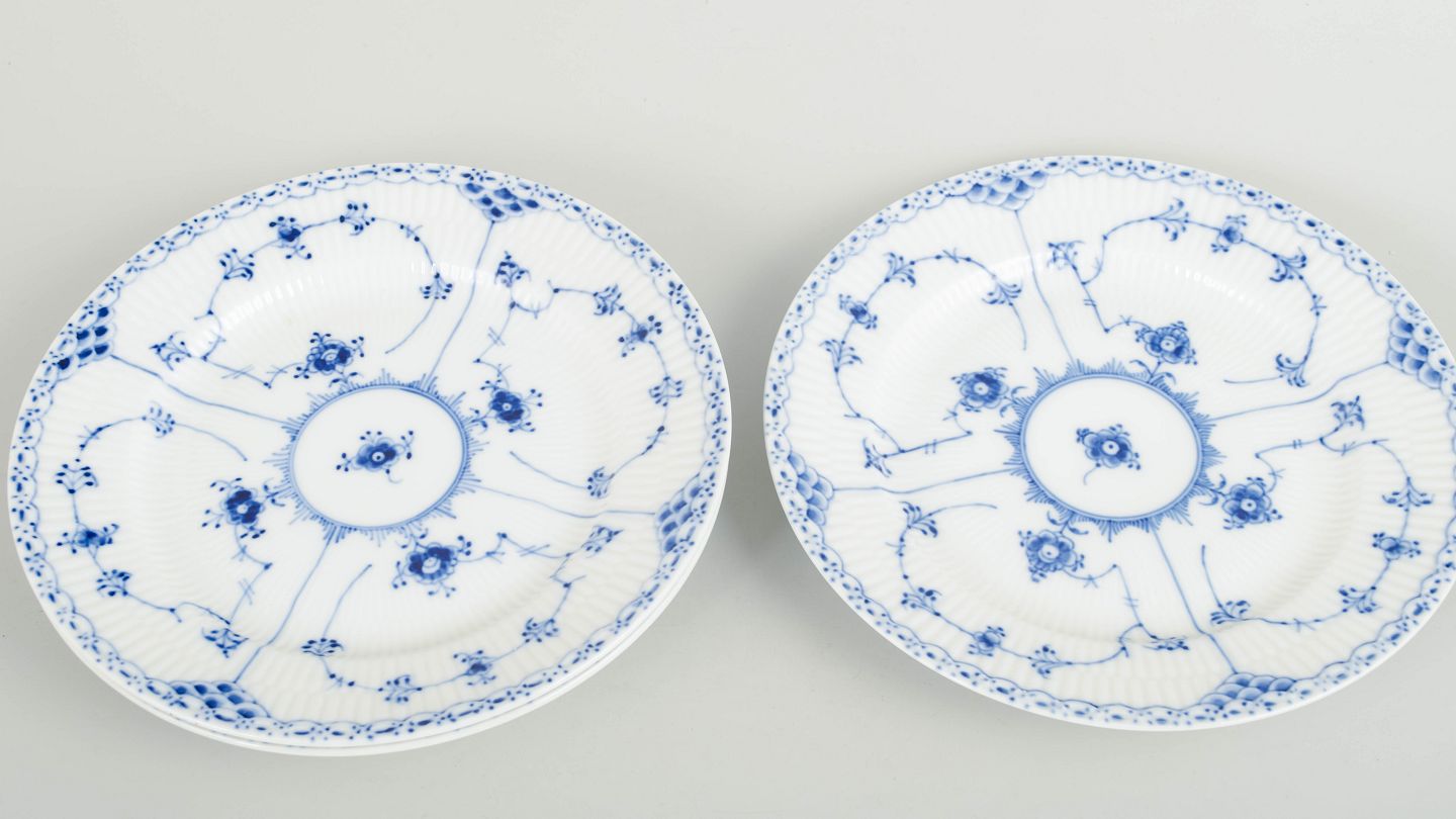 Royal Copenhagen Musselmalet Halvblonde, sæt af tre frokosttallerkener.