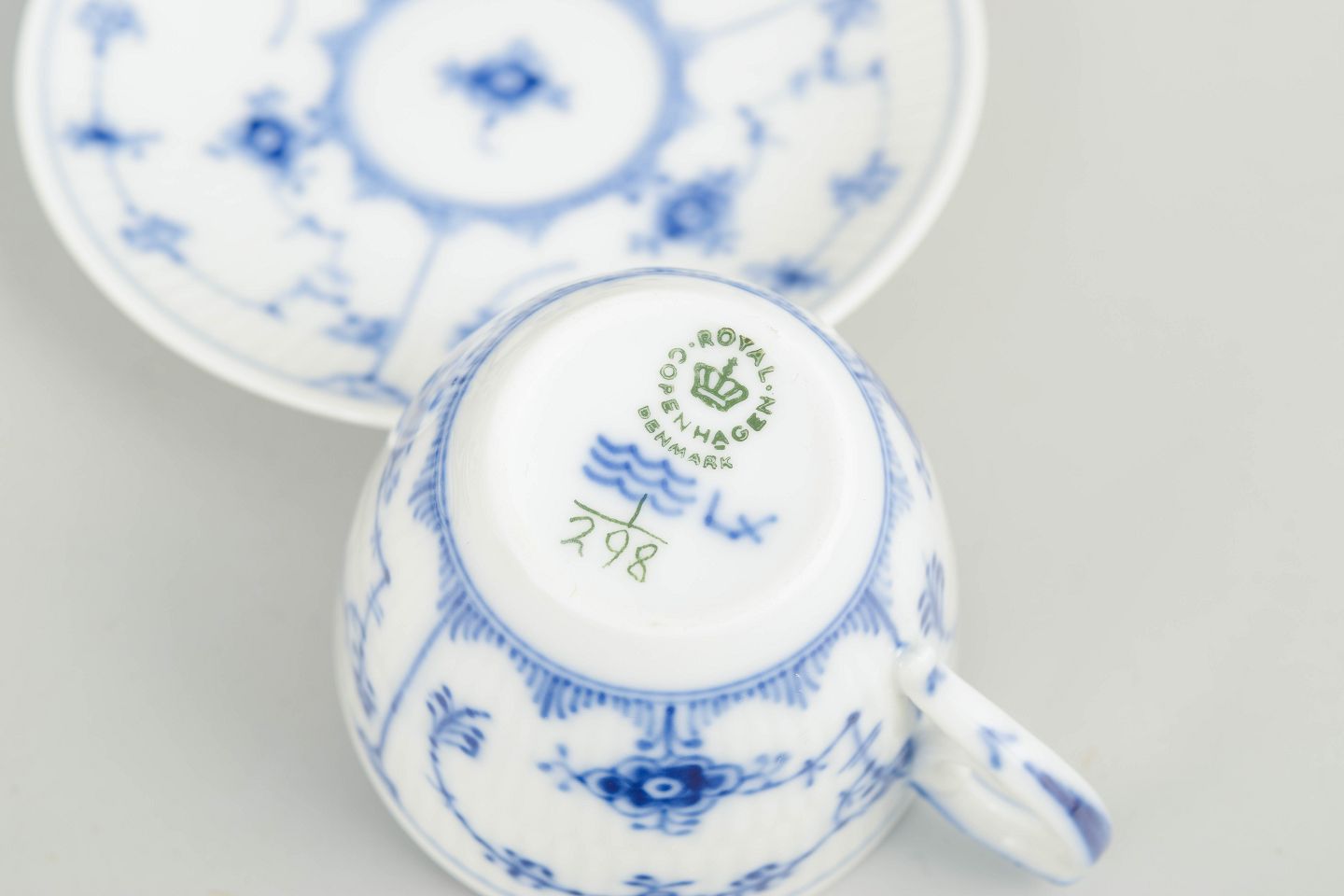 Royal Copenhagen blev grundlagt i 1775 i København under kongelig bevilling. Fabrikken er internationalt anerkendt for sit håndmalede porcelæn og sit høje kunstneriske niveau. Musselmalet Riflet er fabrikkens ældste stel, introduceret i 1775 og stadig produceret i dag, kendt for sin klassiske koboltblå dekoration og riflede form.