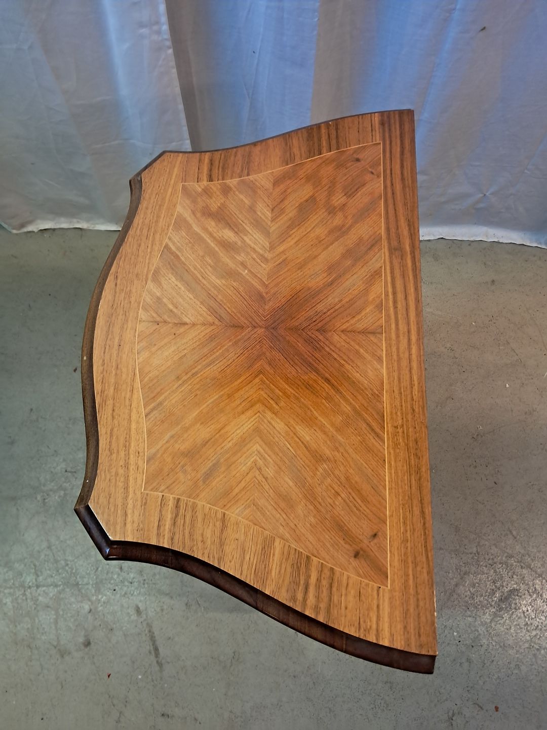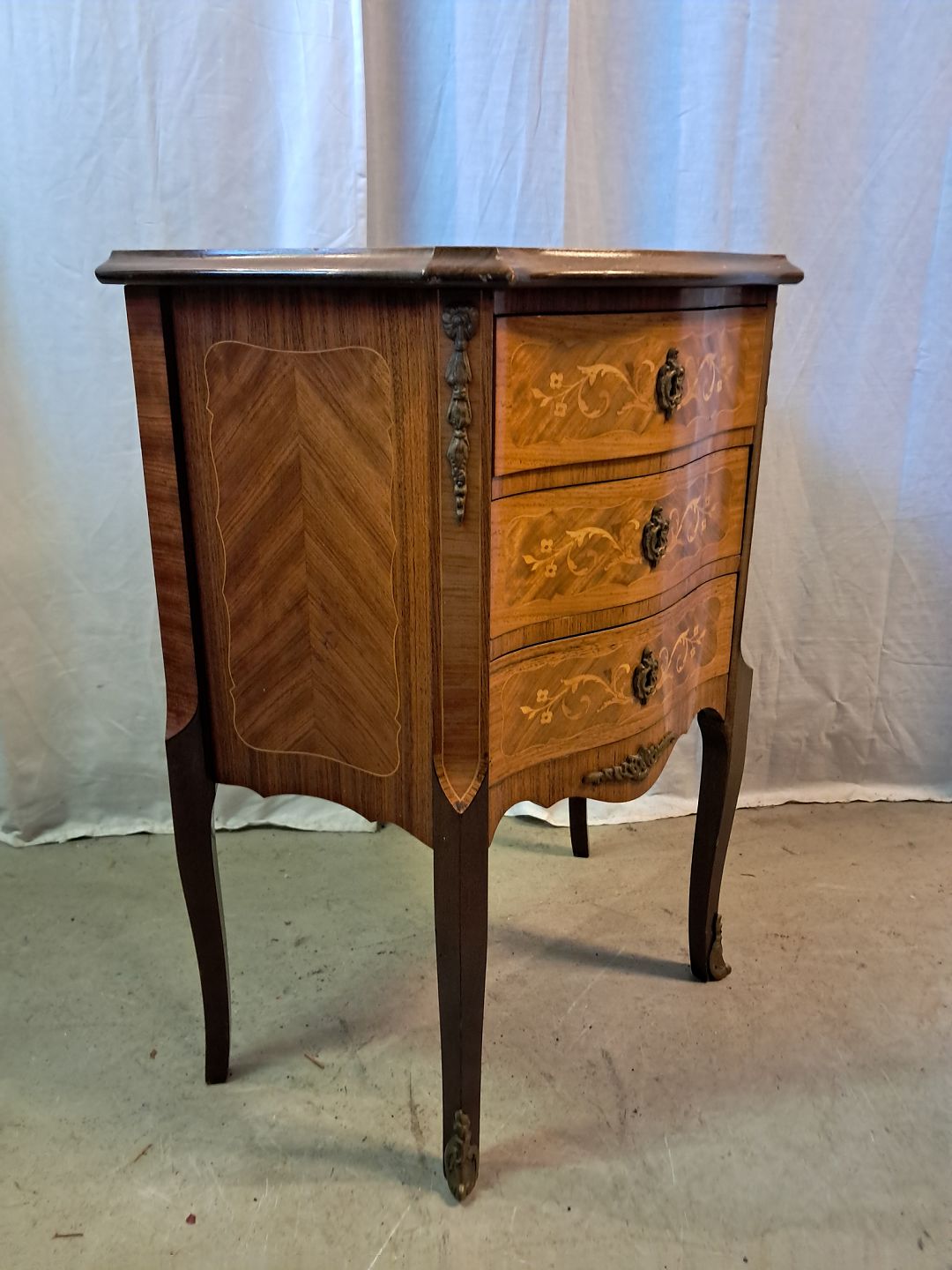 Kommode i fineret mahogni med intarsia, fra 1980erne.