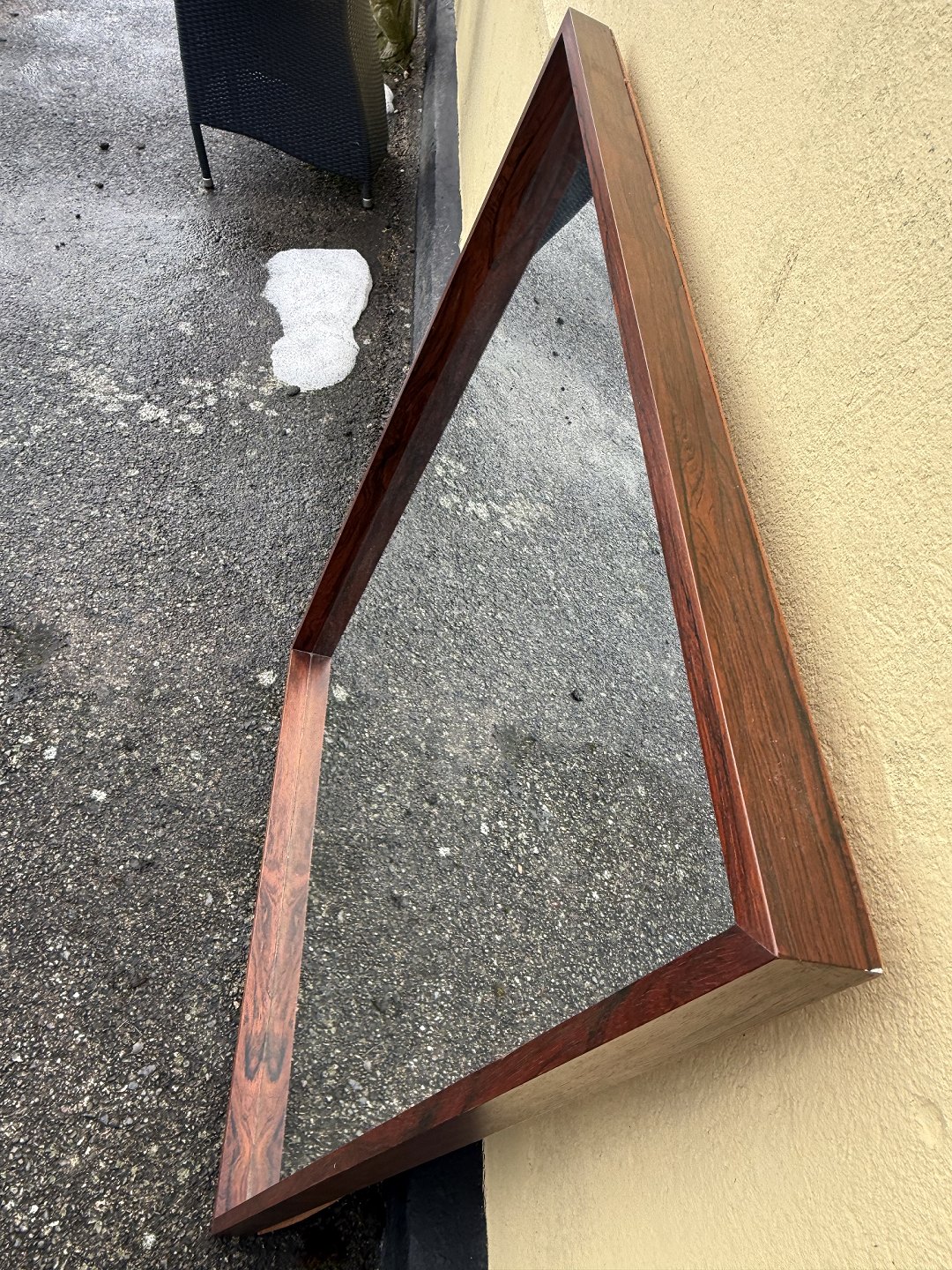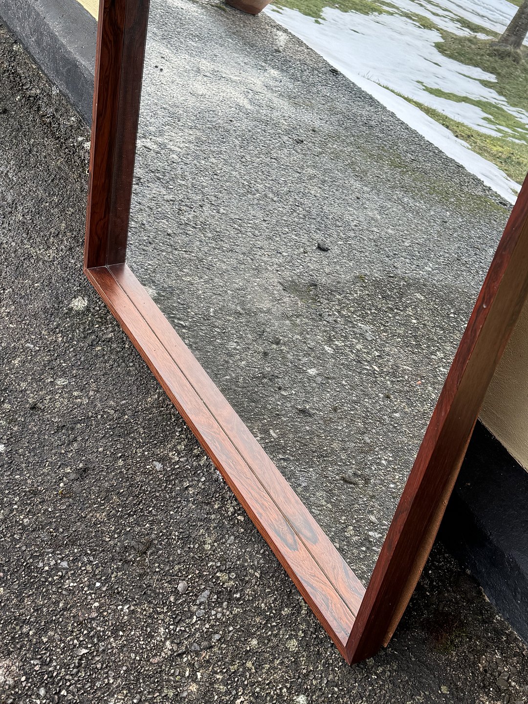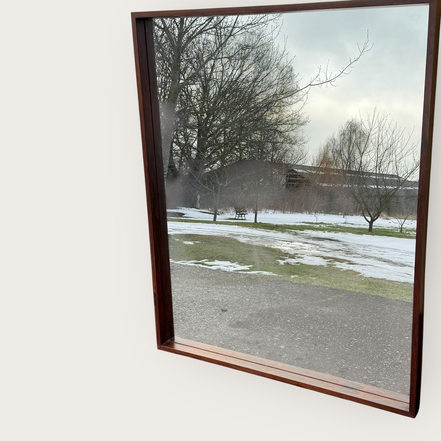 Stort palisander spejl med kraftig ramme. Har været entresæt sammen med skænken varenr. 632824, Udgået og mærket fra Illums Bolighus, Mål: 100x123cm *Flot stand*