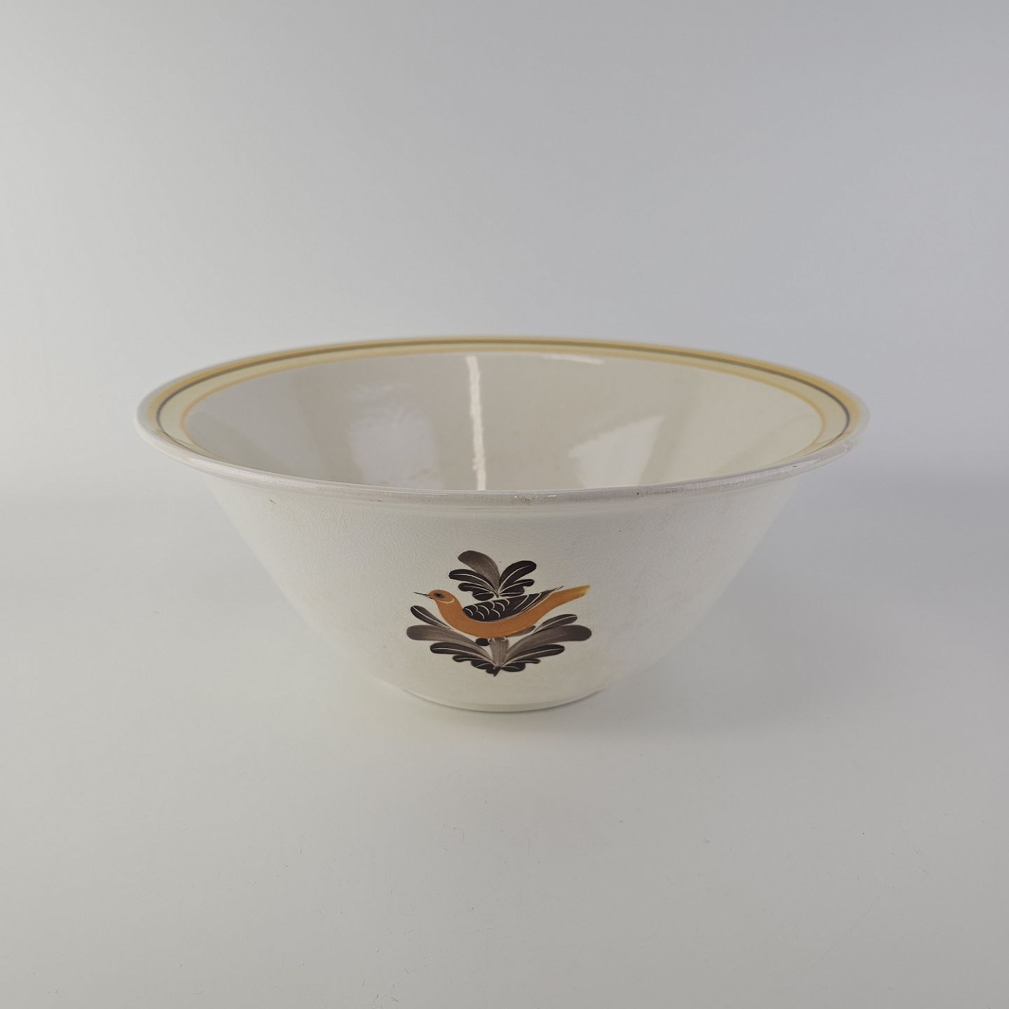 Skål i fajance fra stellet Margrethe fremstillet i perioden 1937-1940.