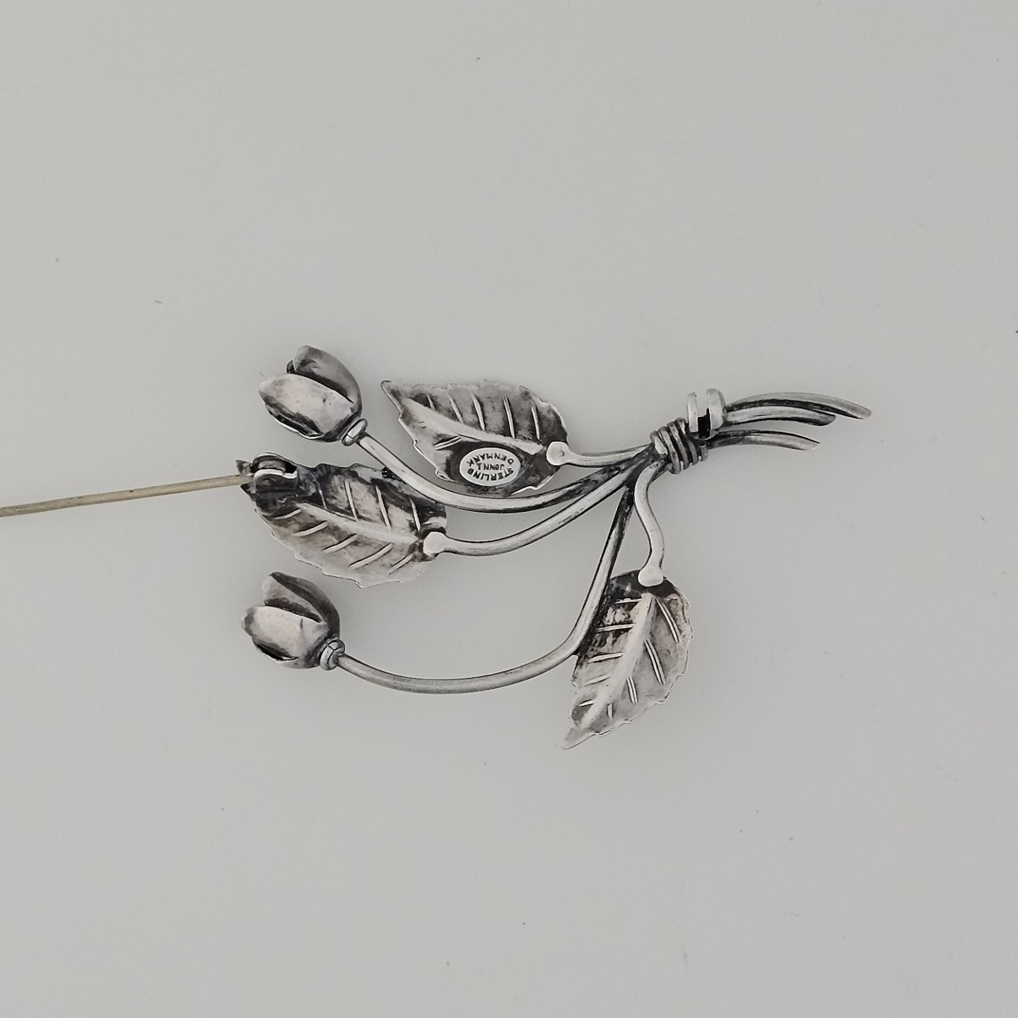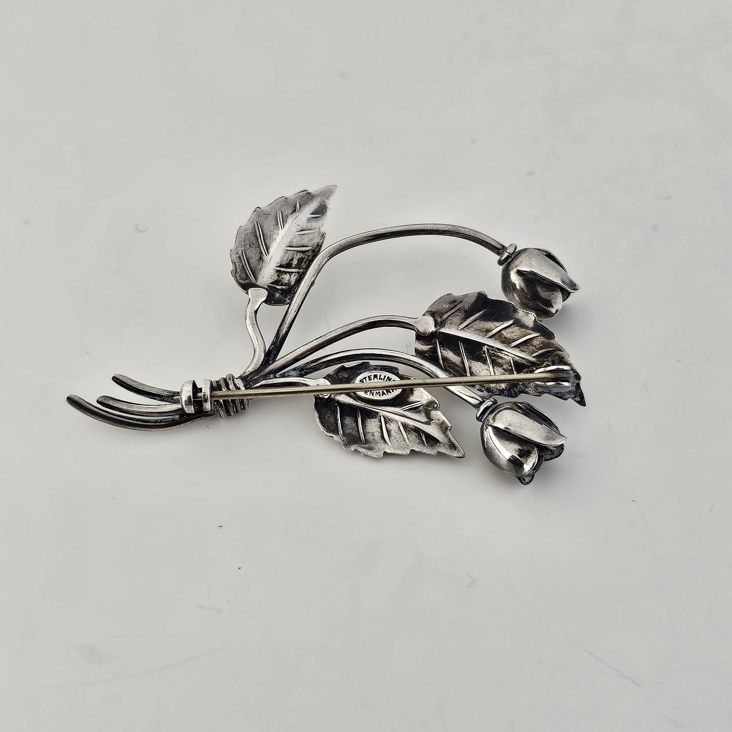 Broche i sterling sølv med motiv af en lille blomsterbuket