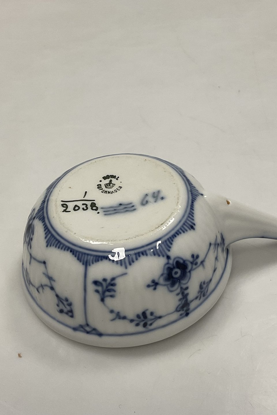 Royal Copenhagen Musselmalet Riflet skål med håndtag No. 2038
