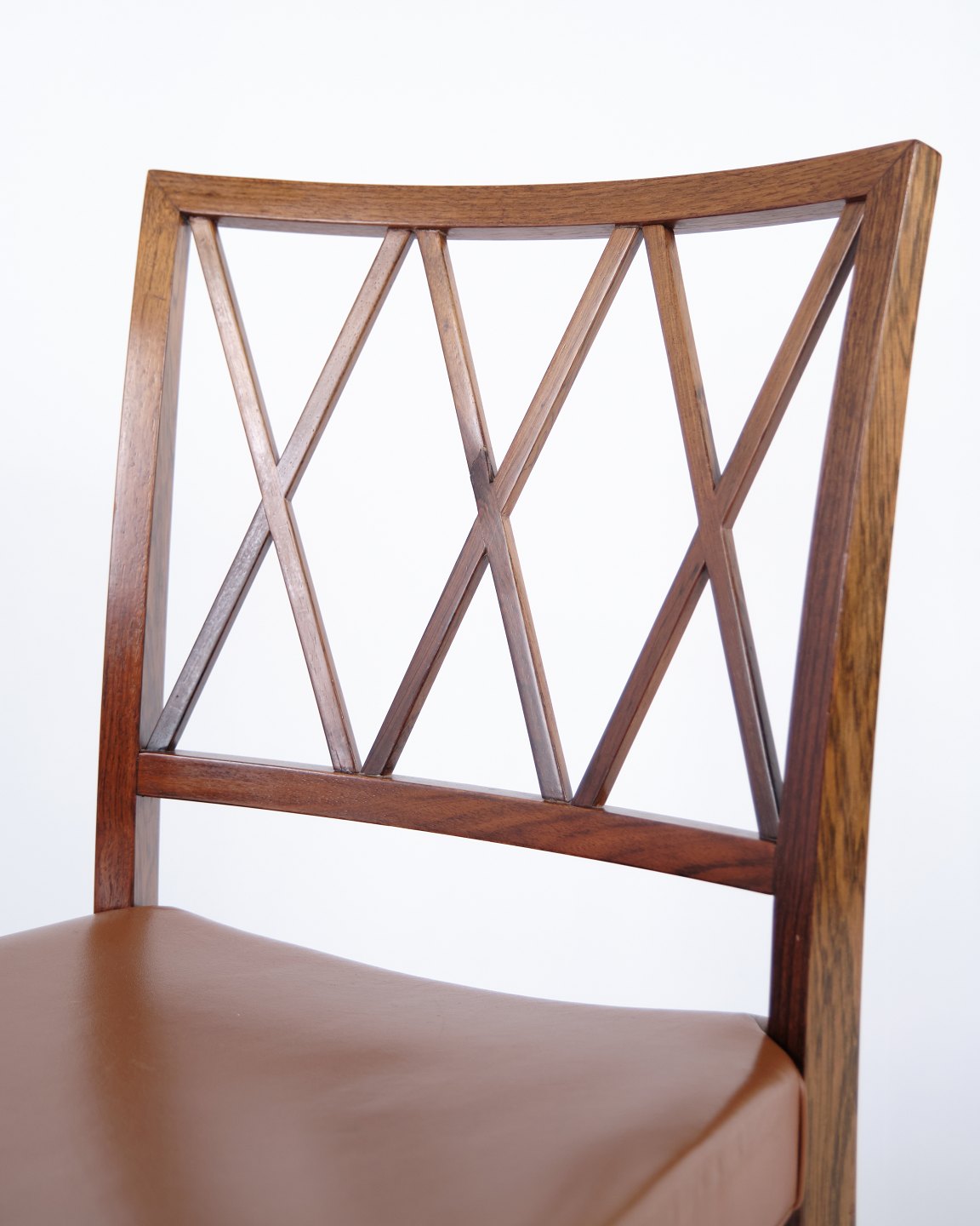 Set of eight dining chairs in rosewood designed by Ole Wanscher for Slagelse Møbelværk. Danish design from the 1950s with a classic and elegant form.